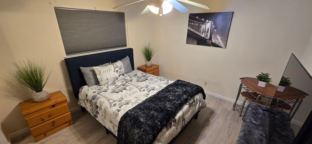 Welcome! Located in the heart of Vallejo CA, our parkside retreat is a 1-bedroom / 1-bath guest house equipped with everything you need for your trip to Vallejo, Napa Valley, San Francisco, and the rest of the SF Bay Area. Featuring: - Keyless self check-in - Whole Home water filtration system - Blue Air filter in the bedroom - Black out curtains - Noise Machine - In home laundry - Free WIFI - Free coffee and tea - Free Welcome Bottle of Wine - Located across the street from a large Park