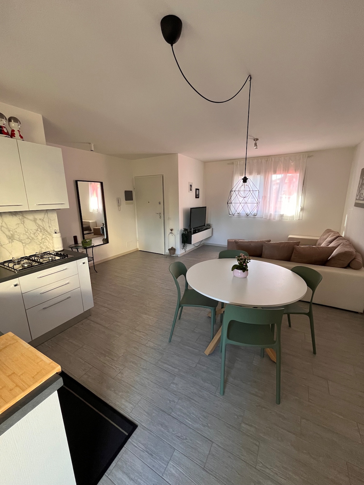 appartamento con ingresso indipendente, vicino agli impianti sportivi (convenzionato per ingressi in piscina e con locale tipico per pranzi e cene), zona tranquilla, posto auto gratuito, a 10 minuti a piedi dal centro, 5 minuti dalla stazione dei treni e corriere. cucina, salottino, tavolo da pranzo, bagno con cabina doccia, ampia camera da letto matrimoniale, seconda camera con letto matrimoniale 140x200 e cabina armadio, 1 divano letto singolo . I cani sono ben accetti. Giardino condiviso.