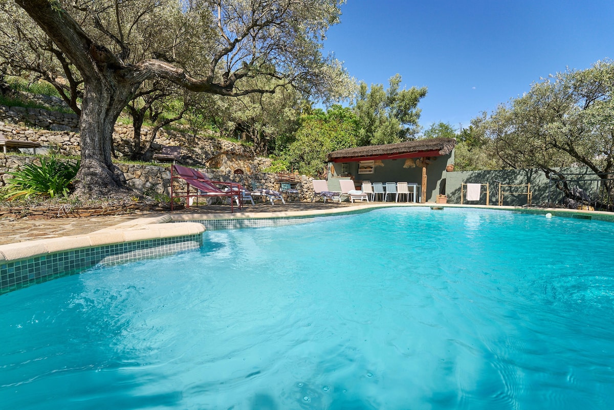 Hindi pangkaraniwang bahay sa kakahuyan. Sa berdeng Provence, matatagpuan sa pagitan ng mga kagubatan, puno ng olibo, scrubland at ubasan. Sunog sa kahoy sa taglamig, swimming pool, petanque field, pagtulog, pagmumuni - muni, yoga o pagbabasa sa ilalim ng pagoda sa kagubatan. Sa gitna ng kalikasan sa isang pambihirang kapaligiran. Kumportable at naka - air condition na shed, tahimik para mag - recharge at mag - disconnect. Paradahan. Bakod para sa aming mga kaibigan sa hayop. Tamang - tama para bisitahin ang magagandang lugar.