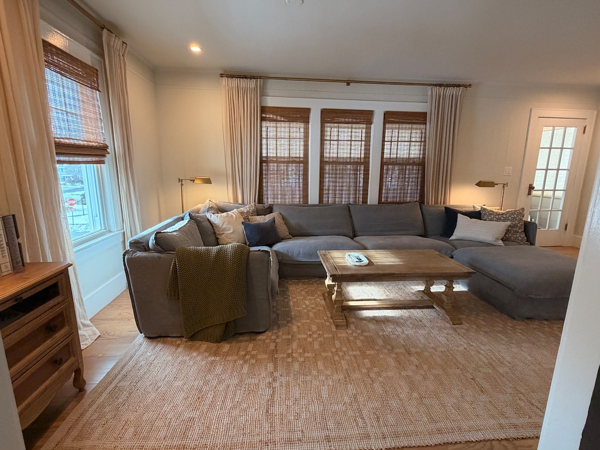 Thoughtfully designed for longer stays, meaningful work and restorative downtime. Luxury home in a quiet Somerville neighborhood is walkable to Downtown Cafés, Restaurants, Shopping and NJ Transit Train Station. Located one block away from RWJ Somerset Hospital & Cancer Center and close to Rutgers, Princeton University and major Pharma Headquarters (J&J, BMS, Sanofi, Merck). Features high-speed Wi-Fi, chef's kitchen, Smart TVs, washer/dryer, designer finishes, and cozy sunroom.