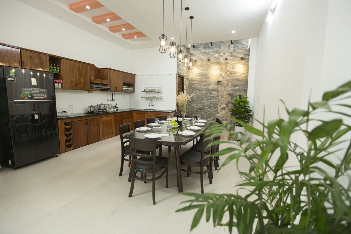 Minimalist na Estilo , Magrelaks, maluwang na lugar para sa malalaking grupo (6 -12). - Pinakamahusay na airbnb sa Da Nang - 3' walk lang papunta sa beach - Malapit sa sentro ng lungsod: 5'lang ang layo - Airport: 12'lamang sa pamamagitan ng kotse - Ang mga maginhawang tindahan, coffee shop, spa, sea food at sikat na restaurant ay nasa loob ng 5' walk - 5 Stars Bedroom, Banyo :Bedding, Linen, Bathrobe & Towel - Kumpletong Nilagyan ng Kusina na may kaibig - ibig na malaking hapunan - Maluwag at mararangyang ang sala na may 50 pulgada na smart tivi - AC lahat ng espasyo: Sala, silid - tulugan