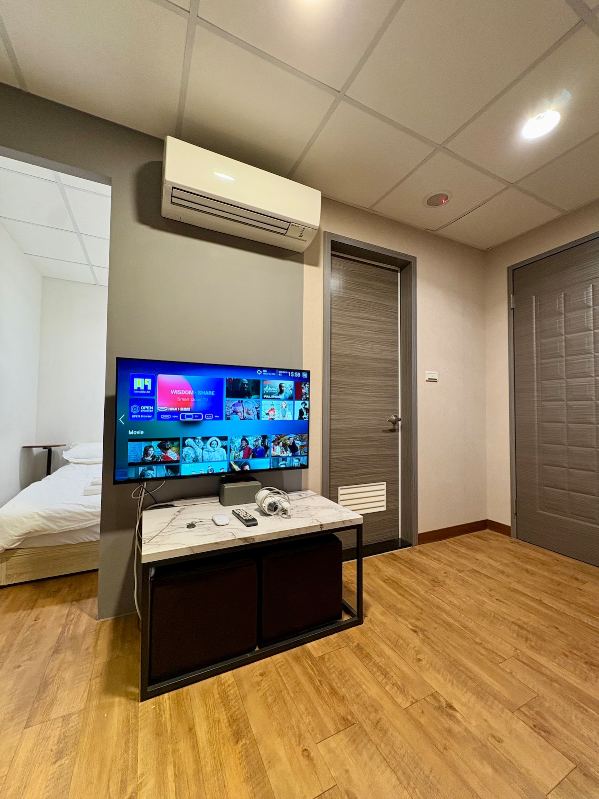 Mga highlight ng tuluyan 🛏 Dalawang pribadong kuwarto, perpekto para sa mga kaibigan o pamilya. 🎧 Natatanging sala, Bluetooth sound system, at mood lighting. ☕ May counter sa minibar kung saan puwede kang maghanda ng tsaa o kape. 🏮 Malapit lang ang Raohe Night Market kaya hindi ka magugutom sa gabi. 🚇 1 min na lakad papunta sa Songshan Station, maginhawang transportasyon. 🚉 3 minutong lakad papunta sa istasyon ng tren, maginhawang transportasyon. 🚌 1 minutong lakad papunta sa hintuan ng bus, madaling gamitin na transportasyon. Hindi ito hotel, at hindi rin ito pangkaraniwang homestay.Isa itong lihim na sulok para makapagpahinga ang mga biyahero sa kanilang mga kaluluwa. Sa paglalakad sa labas ng pinto, naroon ang masiglang Raohe Night Market, inihaw na sausage, pepper cake, bubble tea, at pagtawa ng mga biyahero.Itulak ang buksan ang pinto, at isa pa itong mundo - mga klasikong marmol na sahig, madilim na ilaw, tamad at may saloobin na parang bar. Idinisenyo namin ang aming tuluyan bilang lugar para sa pag - uusap.Dalawang komportableng silid - tulugan, sala kung saan puwede kang magrelaks at makipag - chat, at bar table kung saan puwede kang mag - enjoy sa Netflix at uminom.Hindi ito malaki, pero sapat na para sa iyo na i - unpack ang iyong mga bagahe at ikalat ang iyong kuwento. Angkop para sa: 💝 Nagbabakasyon sa Taipei ang mga magkasintahan sa katapusan ng linggo 💝 Biyahe sa Taipei kasama ang mga Kaibigan 💝 Mga taong gustong maglakad‑lakad sa pamilihang bukas sa gabi at mag‑explore sa Taipei ⸻ 🔔 Mga maalalahaning paalala Walang elevator sa gusali, kailangan mong umakyat sa hagdan; nasa ikalawang palapag ito, isang mababang palapag, madaling umakyat at bumaba ang karamihan ng mga bisita.