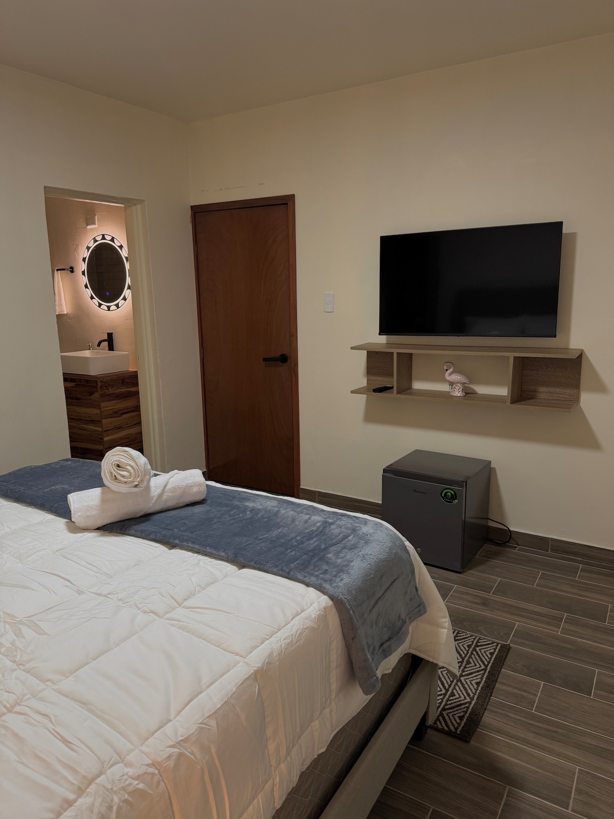 Disfruta de la sencillez de este alojamiento tranquilo y céntrico. Cuenta con cocina completa, baño con jacuzzi, internet independiente, área para trabajar, smart tv, acceso a lavadora y secadora y estacionamiento.