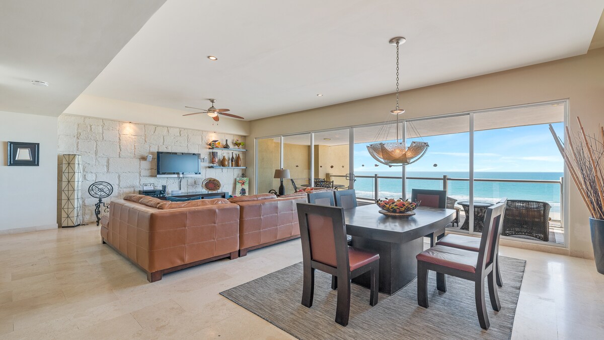 From the balcony of your elegantly updated 7th floor beachfront condo you can hear the Sea of Cortez lapping at the shore while watching a glorious sunset with unobstructed ocean views. Your stunning 2 bdrm/2.5 bath condo is appointed with new furnishings/appliances, original art, stone counters/floors, upgraded linens, a fully stocked kitchen, and 2,025+ sq/ft of living area. Both bedrooms are suites, w/ walk-in closets and private bathrooms with rain showers. A futon sleeps a child/young teen.