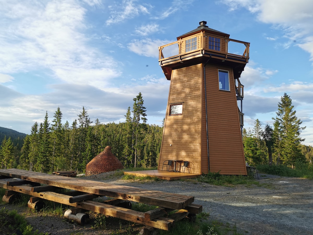 Tårnheim på Hølonda, 45 km frå Trondheim, er 10 meter høgt, med fire etasjar. Bygd i tre med utstrakt gjenbruk av materialer. Kjøkkenkrok i første, bibliotek i andre, soverom med god utsikt i tredje og ein koseleg paviljong med altan i fjerde etasje. The tower is located 45 km from Trondheim. Built in wood with extensive reuse of material. In Jårheim close by is fully equipped kitchen and bathroom with toilet. You can enjoy the view on hills, reading books from the second flor library.