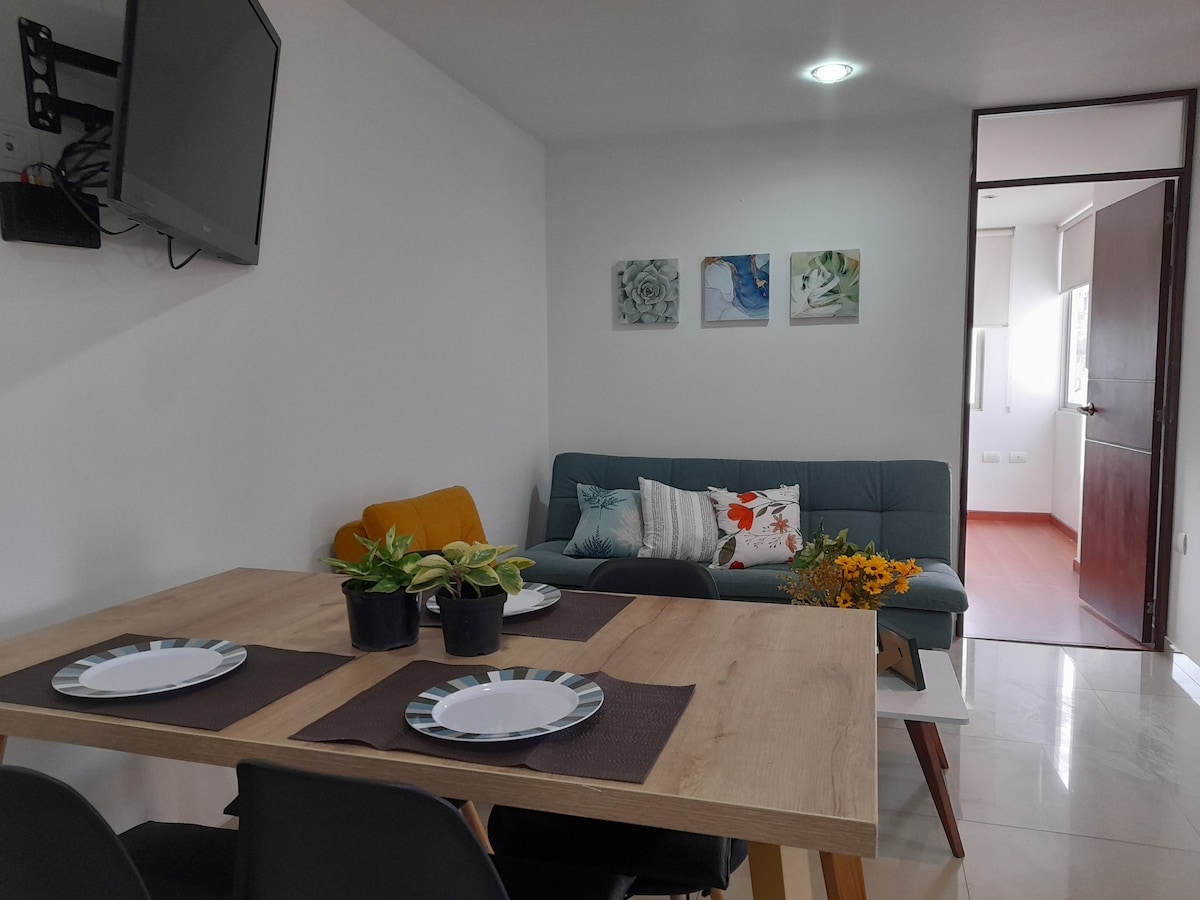 Mahalaga: Inuupahan ito para sa mga grupong may 5 hanggang 6 na tao para sa Kite and Lights Festival, Pasko, at Bagong Taon. MANGYARING hilingin ang reserbasyon sa KABUUANG bilang ng mga bisita. Magandang apartment na may pribilehiyo na lokasyon, sa harap ng magandang parke kung saan masisiyahan ka sa araw at sa pagkanta ng mga ibon. Mainam para sa katapusan ng linggo sa Villa de Leyva sa pinaka - komportable at magiliw na paraan, kasama ang pamilya o mga kaibigan sa isa sa mga pinaka - tradisyonal na nayon sa Colombia.