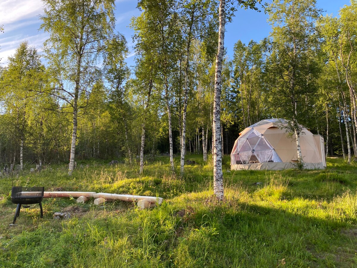 The Domes are placed above a garden where raspberries are grown. The Domes are in nature with a fantastic view of the mountains and the fjord. You can see the sky from your bed. During the winter you might even see stars, the moon – or the northern lights? Homemade breakfast with fresh bread and local products is served in a refurbished barn. The Domes are without electricity, but wood for heating is provided. WC, shower, electricity and WiFi are provided in the barn - 100 m walk.
