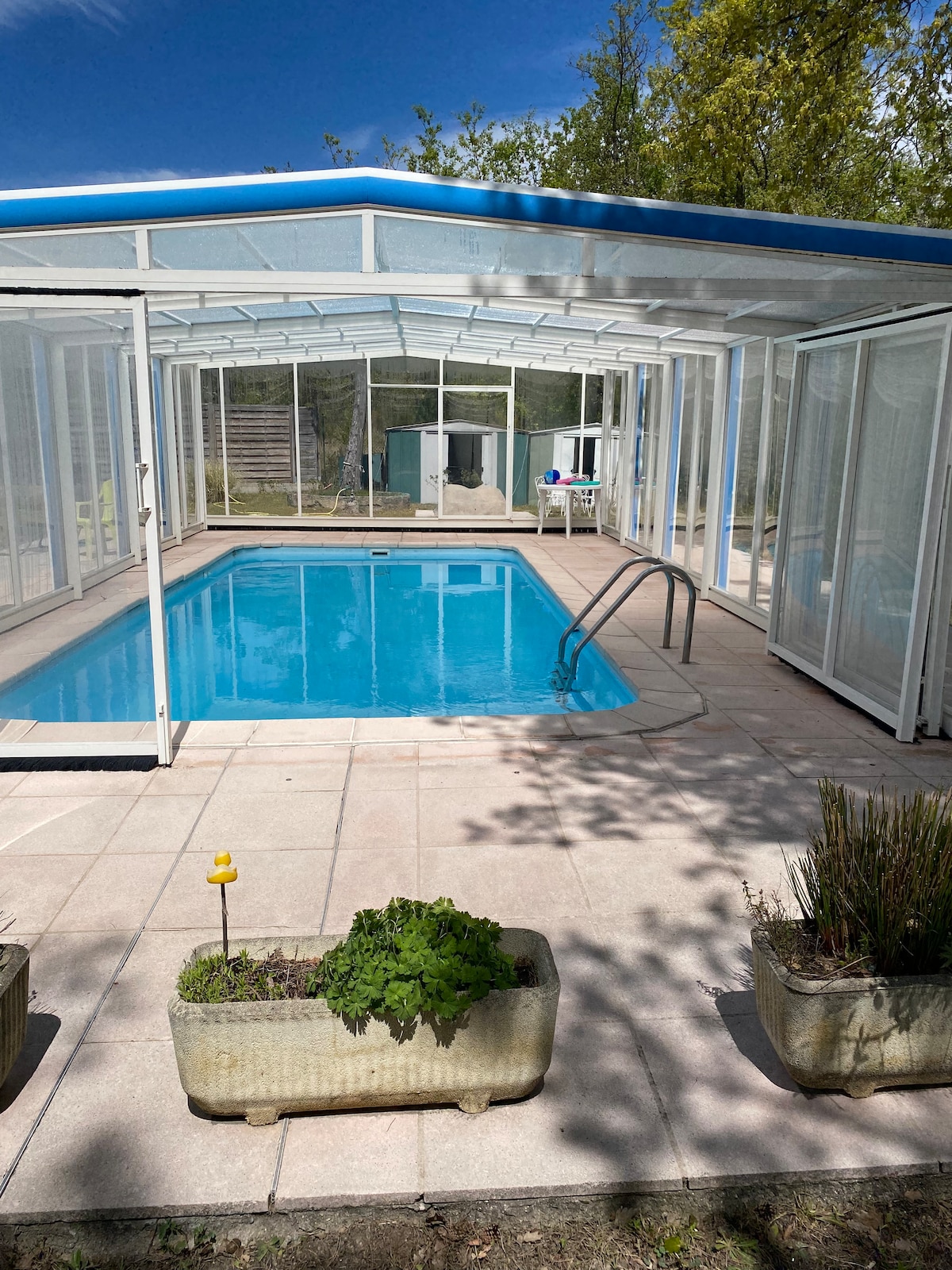 Magugustuhan mo ang natatanging romantikong bakasyunang ito. 20m2 chalet na may pribadong hardin at paradahan, nababaligtad na heating at air conditioning, heated floor. Sofa Double bed of standard size 140cm type click clac very comfortable mattress thick+1 armchair that unfolds into an extra bed a space for a child or occasional adult. Banyo at hiwalay na mga banyo, kusinang kumpleto sa kagamitan, TV, wifi, Ok Googl air conditioning, bentilador... Malapit sa lahat ng amenidad!