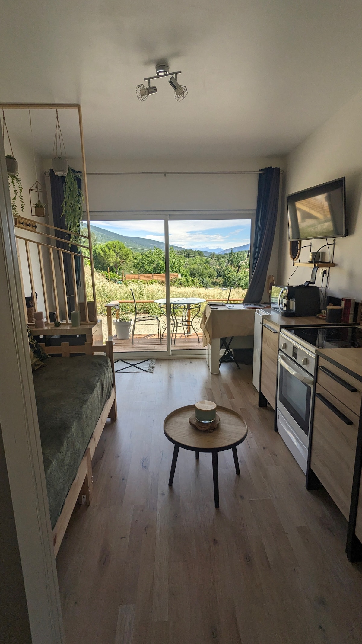 Maligayang pagdating sa aming medyo tahimik na studio na 16 m2 na may mga tanawin ng terrace at bundok! Mag - enjoy sa komportableng sala sa double sofa bed na may komportableng kutson. Ang pribadong shower room ay nagdaragdag sa iyong kaginhawaan. Mainam para sa mga bakasyunan, mag - book ngayon para sa isang kasiya - siyang karanasan! Makakakita ka ng magagandang paglalakad na puwedeng gawin sa paligid at mga lavender field sa malapit .