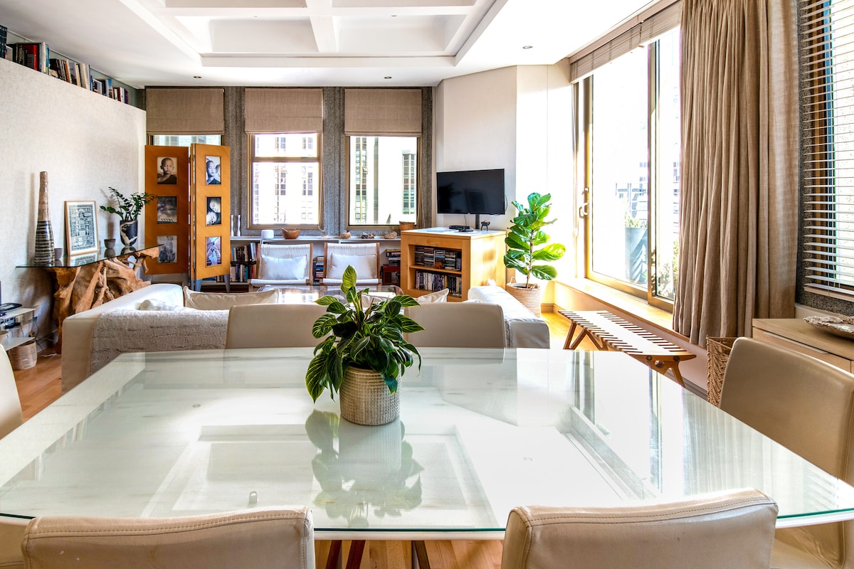 Maghanap ng lugar para mag - recharge sa minimalist na pasadyang disenyo ng makasaysayang tuluyan. Pabatain ang mga pandama sa isang aesthetically nakapapawi na lugar na may monochrome na tema, isang timpla ng mga kontemporaryo at klasikong pagtatapos, orihinal na sining sa buong, at mga tanawin ng bundok. Ang kahanga - hangang arkitektura ng bahay ay ginagawang natatangi at lubos na kaaya - ayang mabuhay ang lugar na ito. Ang lugar ay sobrang ligtas at puno ng mga kahanga - hangang restaurant at bar. Ang parisukat ay isa sa pinakamagandang downtown at ito ay nasa isang heritage area. Ang bahay ay napaka - secure din, na may alarma, ligtas na mga pintuan atbp. Pinapayagan ang mga bisita na manigarilyo sa terrace, hindi sa loob ng loft. May eksklusibong access ang mga bisita sa lahat ng parte ng pangunahing bahay Hindi ako nakatira sa property pero available ako kapag kinakailangan Ang lugar ay pinaka - sentral sa lahat ng Cape Town, nakatakda sa gitna ng napaka - hip at makasaysayang mga spot. Ang kapitbahayan ay tahanan ng maraming restawran, cafe, at tindahan. Ang parisukat sa harap ng bahay ay may sapat na libreng pampublikong paradahan na magagamit para sa mga kotse. Ang Uber ang pinakamabilis, pinaka - maginhawa at abot - kayang paraan para makapaglibot. 150 metro ang layo ng pinakamalapit na hop on, hop - off bus stop mula sa bahay. Para sa pampublikong transportasyon, 400 metro ang layo ng pinakamalapit na hintuan ng bus sa MyCity mula sa bahay. Available ang serbisyo sa paglilinis at paglalaba ayon sa pagkakaayos Ang lugar ay pinaka - sentral sa lahat ng Cape Town, nakatakda sa gitna ng napaka - hip at makasaysayang mga spot. Ang kapitbahayan ay tahanan ng maraming restawran, cafe, at tindahan.