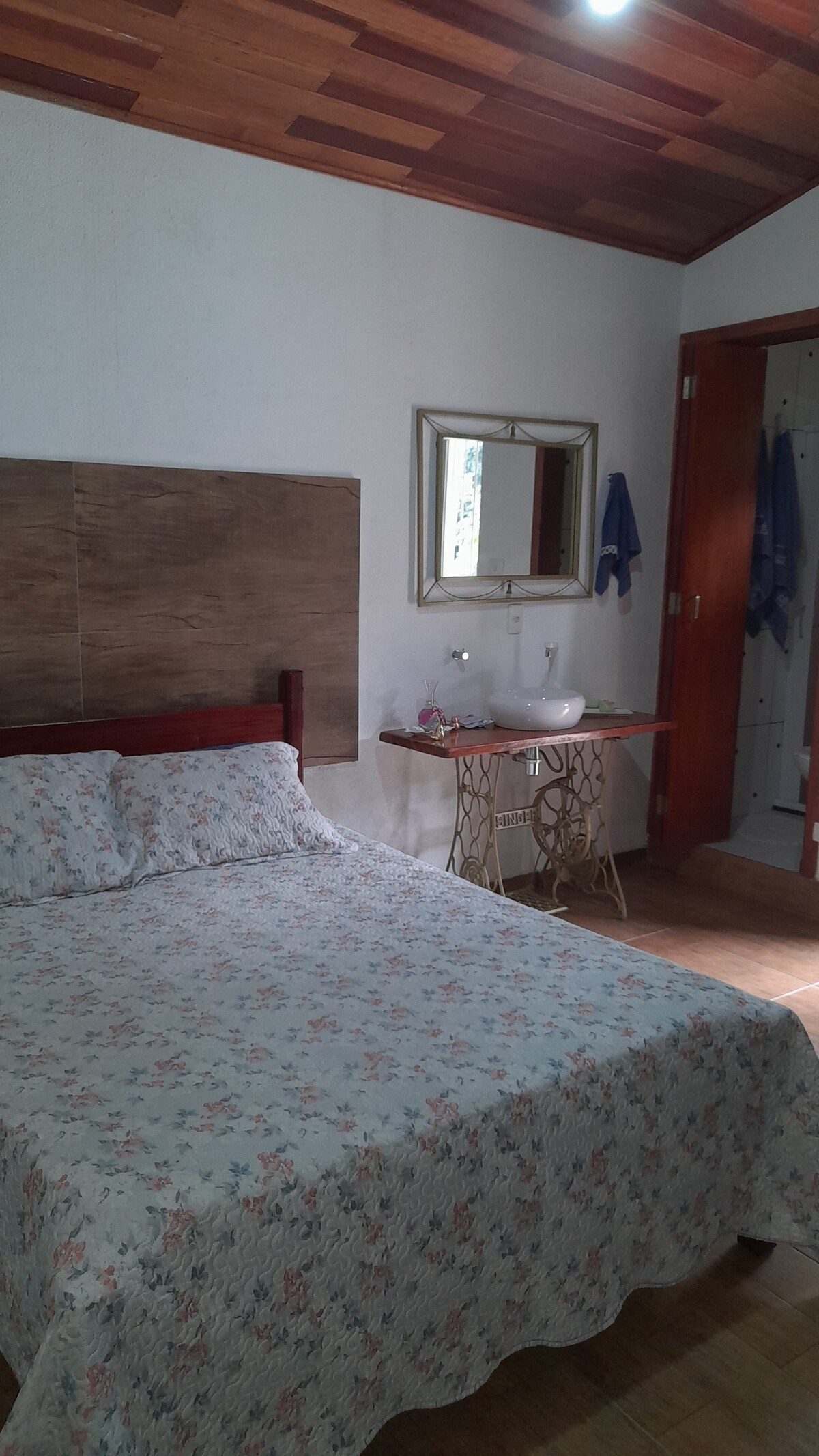 kuwarto ng bagong inn na umaangkop sa hanggang 4 na tao sa isang double bed at isang auxiliary single bed 200 metro ang inn mula sa magandang beach ng guaiuba el Guaruja o.quarto ay may pribadong banyo at maaari mong gamitin ang kusina ng common area mayroon kaming malaki at nakakarelaks na patyo na may mga lambat at napapalibutan ng kalikasan na may mga unggoy na ibon bukod sa iba pa ang inn ay nakaharap sa isang siksik na kagubatan ng napaka - berde at com.varios animas wild masiyahan sa paggugol ng mga araw para mag - relajar