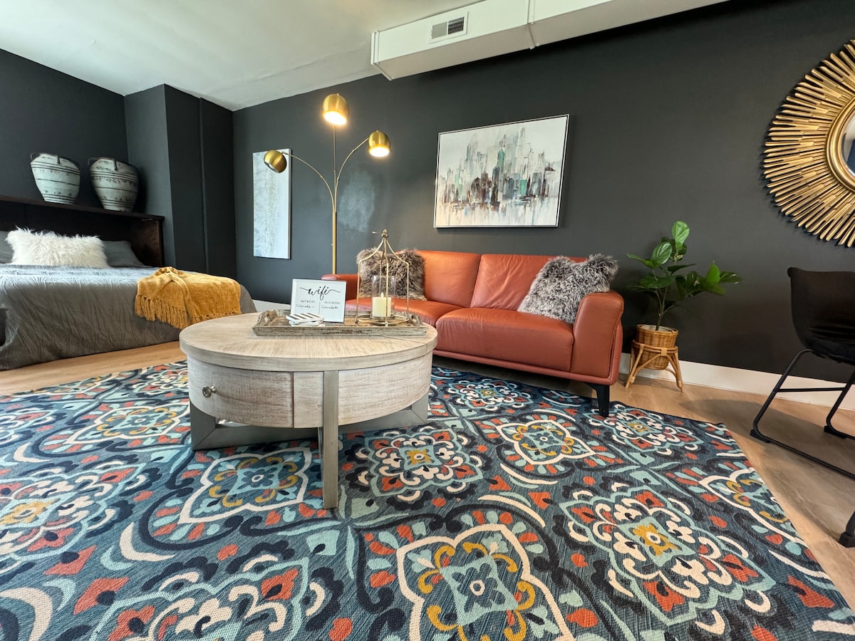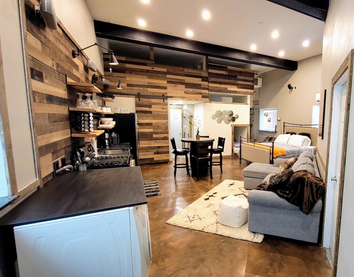 Kasalukuyang loft sa downtown, na matatagpuan sa itaas ng full - service restaurant, award - winning na brewery, lokal na coffee shop/panaderya at sa loob ng maikling lakad papunta sa iba 't ibang tindahan. Nagtatampok ng King bed sa master bedroom, Queen bed sa open - concept bedroom kasama ang magandang workspace at Full pullout daybed sa sala. Ang banyo ay may magandang quartz walk - in shower kasama ang mga dobleng lababo (at washer/dryer). Nagtatampok ang kumpletong kusina ng counter seating na may tanawin!