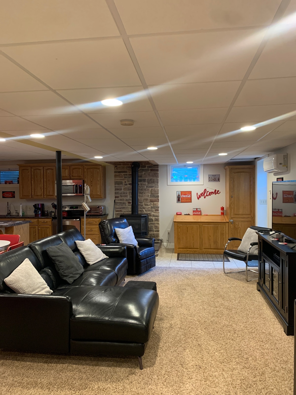 Halika at mag - enjoy sa isang magandang pasyalan na napapalibutan ng Amish farmland. Mamalagi sa pribado at kumpleto sa gamit na suite na may retro flair. Ilang minuto ang layo nito mula sa Shady Maple Market (isa sa pinakamalaki sa Lancaster) 9 na milya ang layo mula sa Kitchen Kettle Village at Lapp Valley Farms. 17 milya ang layo nito mula sa lahat ng Lancaster Outlets at sa mga nakamamanghang palabas sa Sight at Sound Theatre at American Music Theatre. 1 oras ang layo namin mula sa Hershey Park Chocolate World at 28 milya mula sa masalimuot na Longwood Gardens.