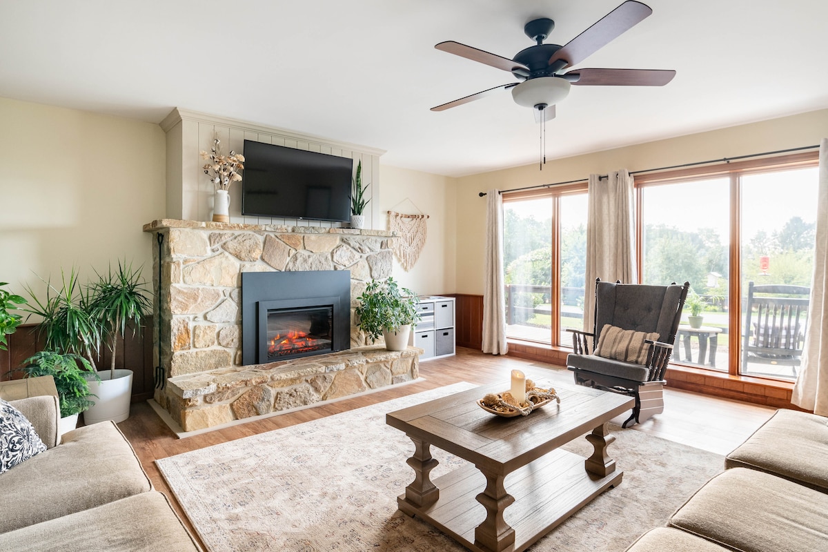 Napakapayapang bakasyon sa gitna ng mga bukirin ng Amish! Umupo sa tabi ng apoy.Listen sa mga ibon, mga ingay sa bukid, at mas maraming clip - clop na tunog ng mga kabayo at mga kulisap kaysa sa mga kotse! Maglakad sa "Money Rocks" dalawang milya ang layo. Ang pinakamalaking smorgasbord ng America na may Dutch cooking ay anim na milya ang layo.Maple Grove Speedway, Sight at Sound Theater, Kitchen Kettle... ilang "Dapat Makita"sa iyong likod na pinto! Tahimik na maglibot sa aming mga bisikleta. Dalawang 700watt Ebikes na magagamit para sa mas nakakarelaks na adventurer! Fitness, mga laro sa bakuran, at deck din!
