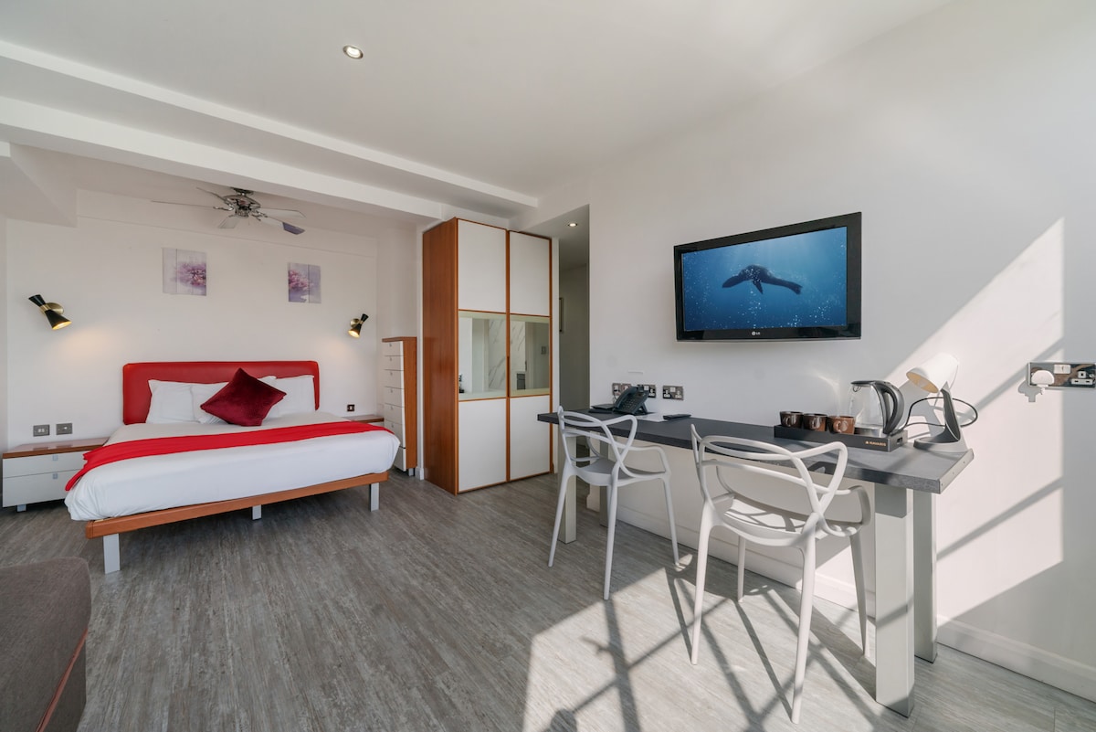 Located throughout the House, our well proportioned Club Flats have a UK king bed (US queen), fully equipped kitchenette, open-plan sitting / dining area, large wardrobe, desk, en-suite shower room, Wi-Fi and AC. Signature interior design features a sophisticated teal blue, burgundy or deep green colour palette, layered with velvets, tweeds and bold botanical prints, with a beautiful decorative screen, separating the living area from the bedroom. Sleeps 2 UK | UK King Bed | 23 - 27 Sqm