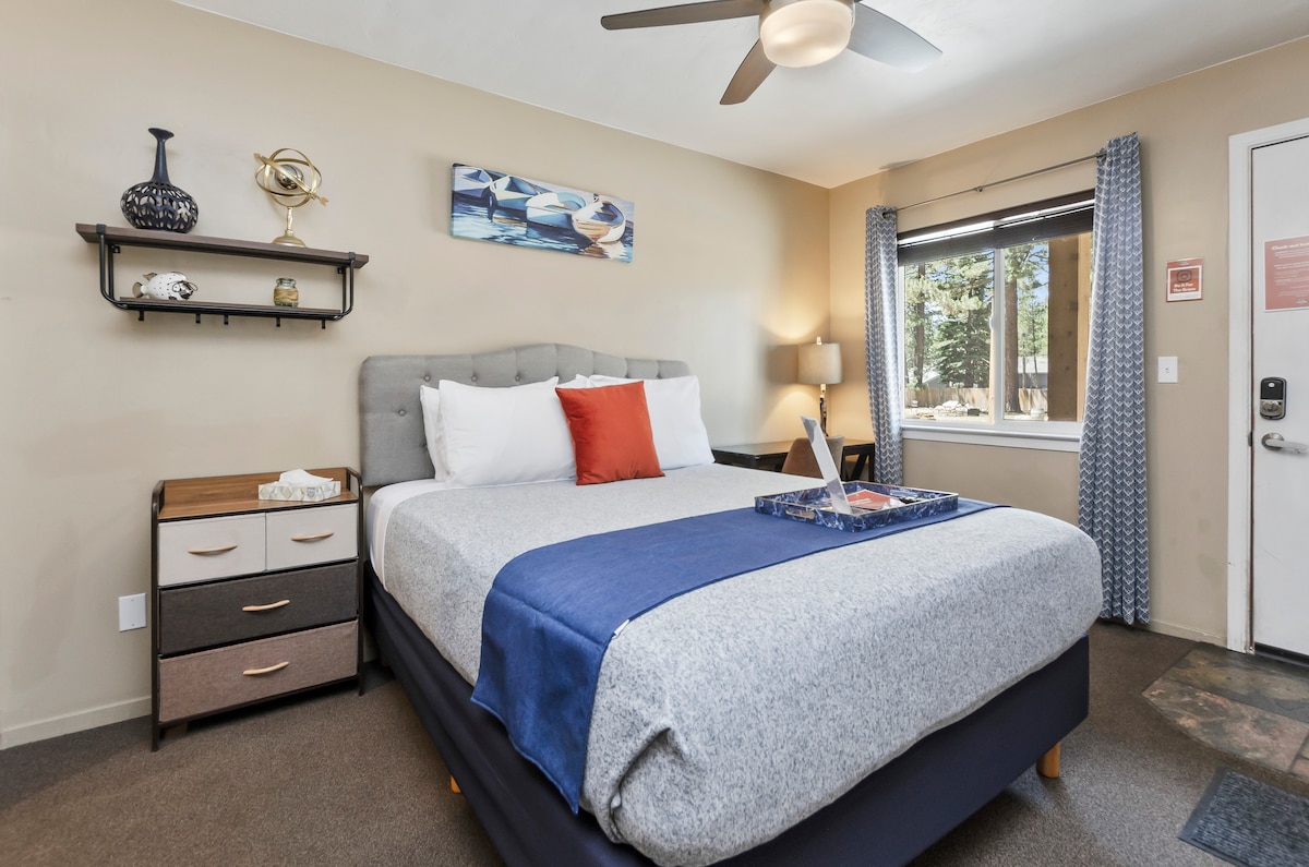 Welcome sa Playpark Lodge sa South Lake Tahoe. Ang maluwang na uri ng kuwarto ay ipinagmamalaki ang mga ginhawa at karangyaan sa buong: ★ Tahimik na kapitbahayan ★1 Silid - tulugan - 1 Reyna ★1 Banyo ★ Lake Tahoe Pizza Co - Next Door ★ Fine Dining: Primo's - Sa kabila ng kalye ★9 milya: Zephyr Cove ★9 milya: Emerald Bay State Park ★2 milya: Lake Tahoe ★5.6 milya: Mga Casino - Harvey's, Harrah's, Bally's ★Mainam para sa mga grupo at pamilya ★Puwede ang mga aso! (Unang aso: $35/gabi at pangalawang aso: $15/gabi)