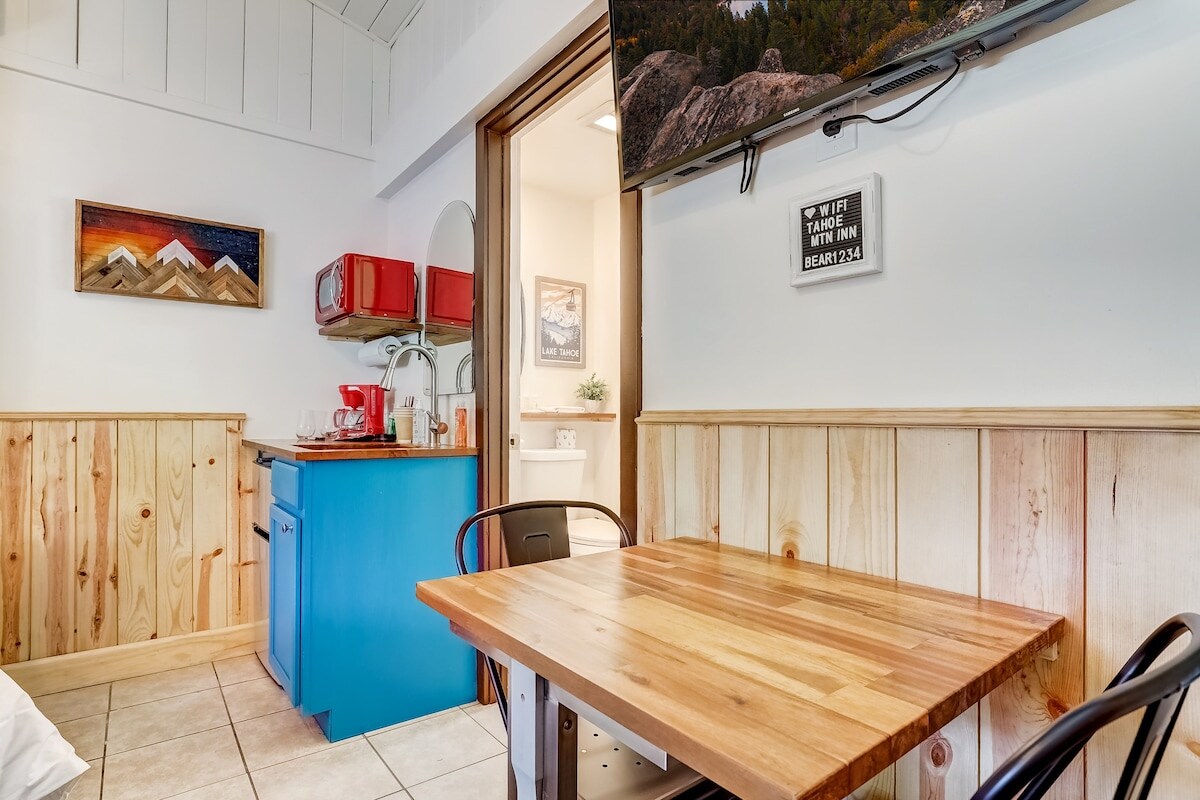 Inayos kamakailan ang aming makulay na Inn na may klasikong retro flair at perpektong matatagpuan sa loob ng maikling biyahe papunta sa lahat ng pinakamagandang atraksyon ng Tahoe. Gagamutin ang mga bisita sa mga buhol - buhol na pine finish, makukulay na accent, at masarap na dekorasyon sa bundok. Matapos ang buong araw ng libangan sa labas, matutuwa kang bumalik at yakapin ang fireplace, maghanda ng pagkain sa kusina o mag - order ng takeout mula sa isa sa maraming kainan sa loob ng maigsing distansya. Tingnan kami sa IG @tahoe_gallery_inn