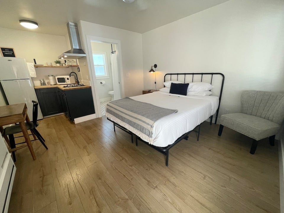 Enjoy your own private studio, with private entrance on a quiet street surrounded by National Forest. The studio has 1 bedroom with a queen bed, private bathroom, lounge area with a gas fire place and kitchenette. We are surrounded by lots of great mountain bike/hiking trails, 15 minutes to the lake, and three ski resorts within a thirty minute drive. Perfect location for a fun stay.