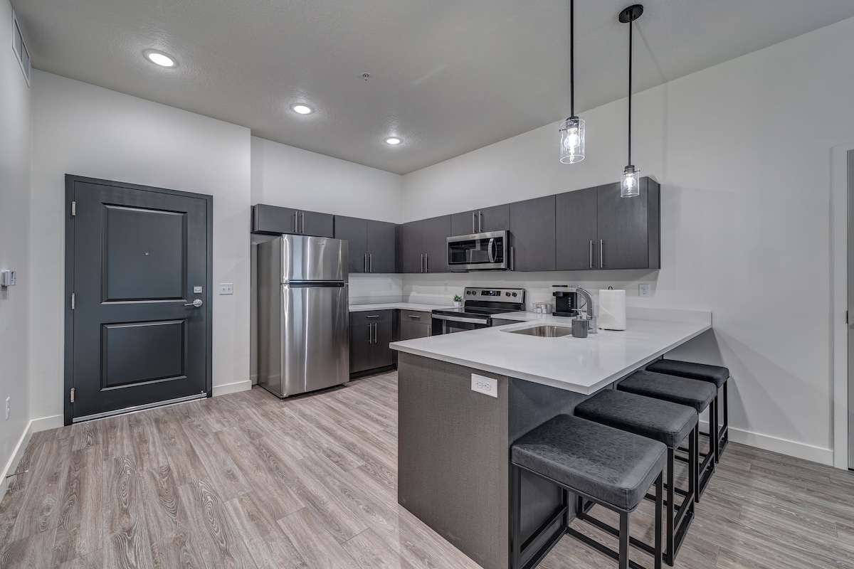 Masiyahan sa moderno at komportableng karanasan sa apartment na ito sa sentro ng lungsod ng Salt Lake, 7 minutong biyahe lang ang layo mula sa Airport, 10 minutong lakad mula sa Delta Center at 4 na minutong biyahe mula sa salt palace convention center! Puno ang lungsod na ito ng mga ski - resort, bar, restawran, tindahan, at kapitbahay sa magagandang bundok, lawa, at iba pang makasaysayang landmark. Madaling maglakbay sa Salt Lake mula sa pangunahing lokasyon na ito! Matuto pa sa ibaba:
