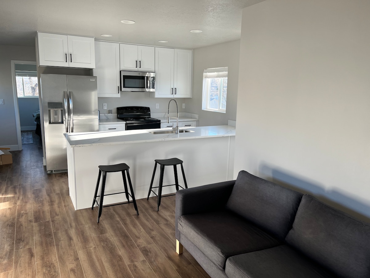 Centrally Located in Salt Lake City, this basement half of a duplex is just minutes from the highway, giving quick (thirty-forty minutes) access to seven world class ski resorts. Only fifteen minutes from Downtown, Temple Square, and the University of Utah. The house has been tastefully updated with 2 bedrooms and a large couch. Great for hanging out. Full kitchen to cook whatever your heart desires. Share laundry on the same floor.