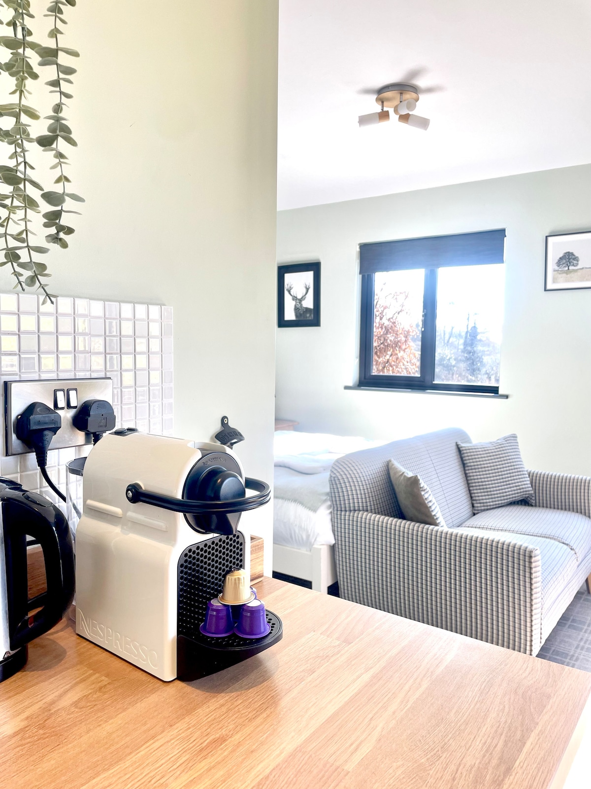 Luxury boutique studio sa lubos na kanais - nais na nayon ng Pattingham na nagbibigay ng perpektong setting. Ang designer na interior ay patuloy sa isang olive green double bed, % {bold mattress at luxury % {boldo - allergenic bedding. Pooky lighting sa itaas ng kama para masiyahan sa pagbabasa sa oras ng gabi. May sofabed, WIFI, at Smart TV. Nag - aalok ang maliit na kusina ng lababo, micro combi oven, coffee machine, toaster, takure, % {bold na radyo at mini fridge. Marble tiled ensuite na may walk - in shower at mga komplimentaryong fitting.