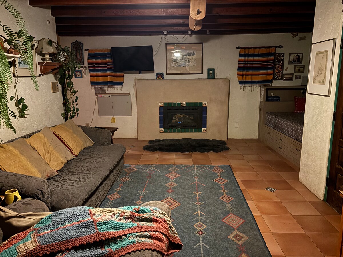 Kasama sa aming magandang tuluyan sa timog - kanluran ang queen - sized na higaan, at sofa na pampatulog sa sala. Nakalakip sa sala ang upuan sa silid - kainan 4. Bukod pa rito, iniaalok namin ang lahat ng kakailanganin mo para masiyahan sa isang nakakarelaks na tuluyan na malayo sa bahay na may naglalakad na meditation garden, dalawang patyo para sa kainan, isang panlabas na kahoy na swing para makapagpahinga nang may tasa ng tsaa sa umaga, isang fire pit para sa mga s'mores para masiyahan sa magagandang gabi sa Albuquerque. Malapit kami sa ilog, mga trail, mga parke, at mga pamilihan.
