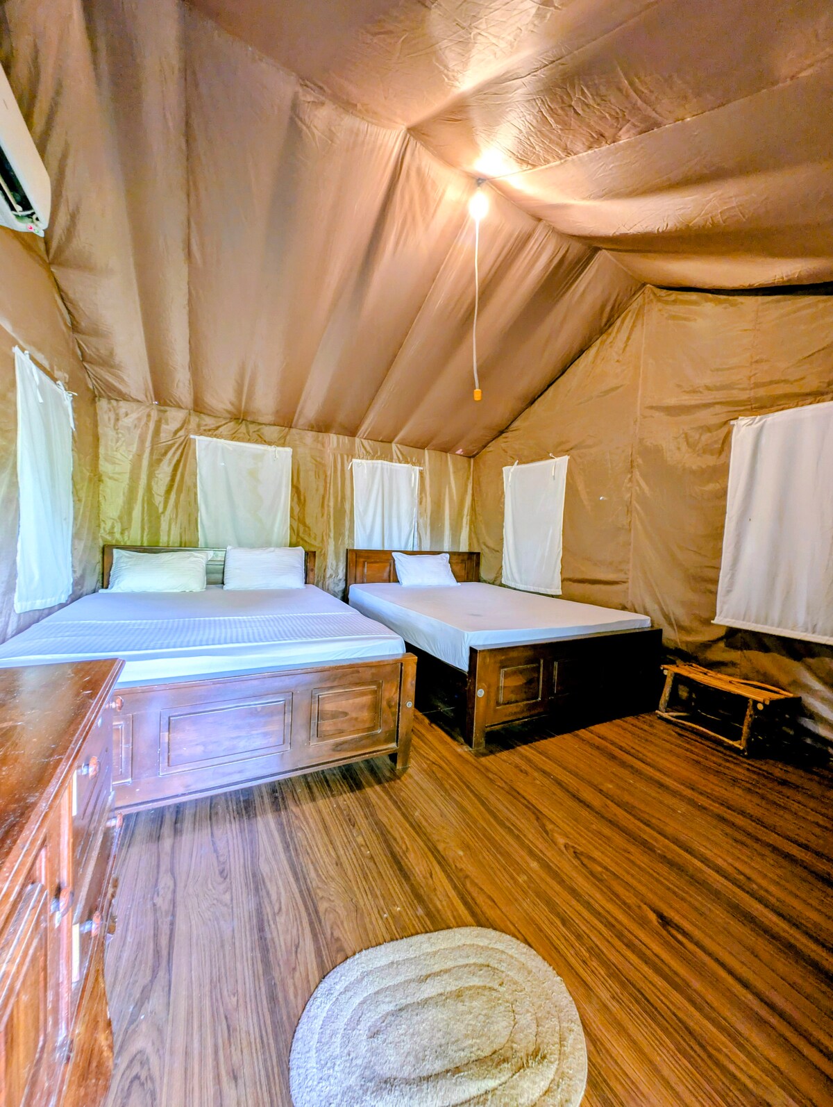 Matatagpuan sa isang tahimik na nayon malapit sa Yala National Park, nag - aalok kami ng isang timpla ng mga marangyang amenidad at isang tahimik na natural na setting… may iba 't ibang aktibidad na libangan, kabilang ang mga safari tour, pagbibisikleta at hindi malilimutang BBQ camping night Idinisenyo ang mga kuwarto para makapagbigay ng komportableng karanasan sa camping na may likas na bentilasyon at napapalibutan ito ng natural na bushland. Nilagyan ang mga tent ng mas malamig/bentilador, mga pasilidad para sa paggawa ng tsaa/kape, at mga nakakonektang banyo na may mga gamit sa banyo.