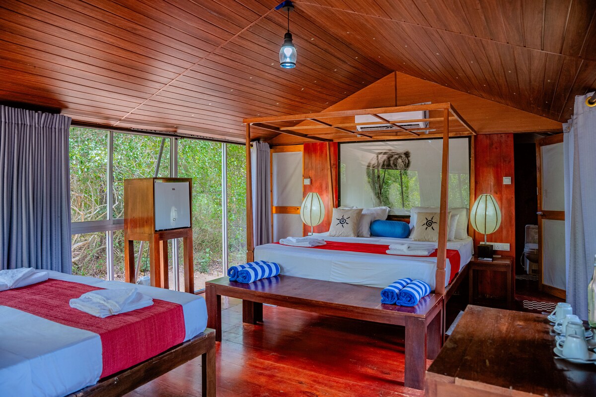 We warmly welcome you at the lobby with a hot or cold beverage and a soothing wipe. While you relax here, we will have a brief run-through of the bushcamp facilities and guidelines to ensure you are safe and secure at all times. We will also discuss the itinerary planned for your stay and accommodate any other activities, you would want to engage in. You are also welcome to relax here and skim through our coffee table books highlighting Sri Lanka’s wildlife.