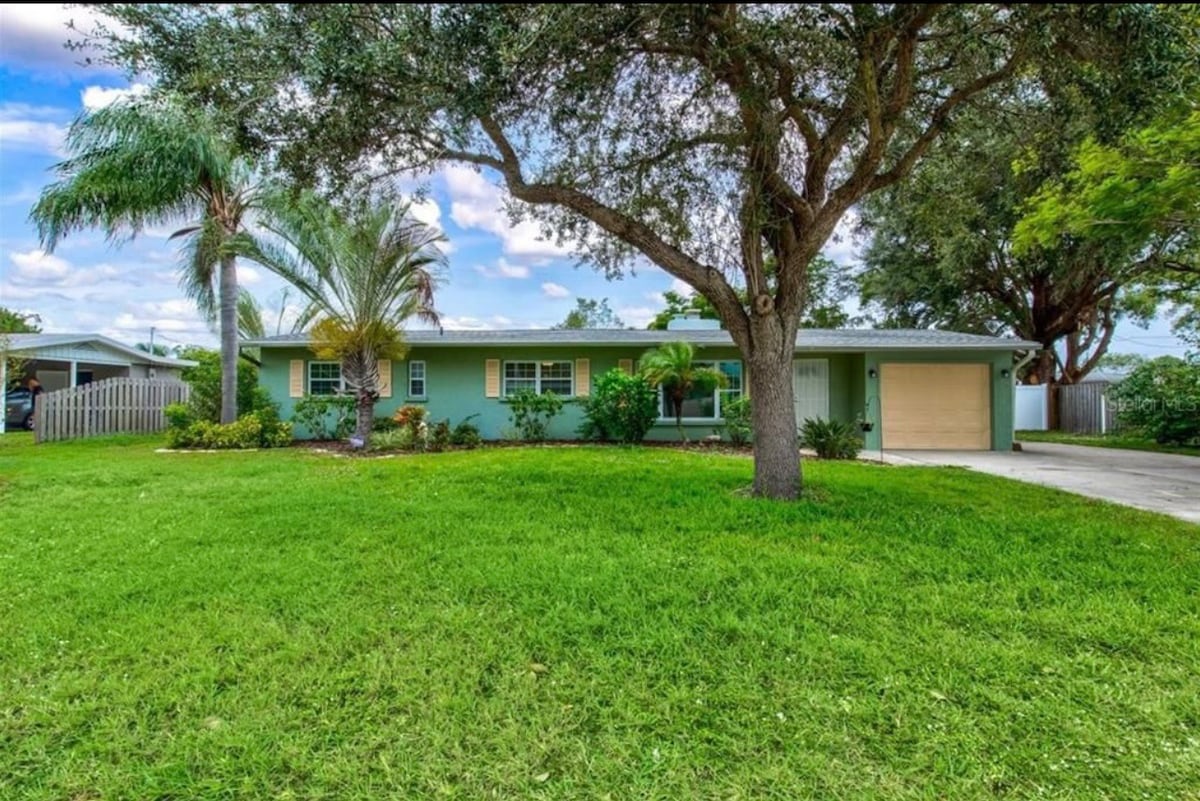 Isang bagong na - update na hiyas sa gitna ng makasaysayang kapitbahayan sa South Gate ng Sarasota, ang bagong ayos at maliwanag na tuluyan na ito ay nakatayo bilang patunay sa mid - century boom na humubog sa Sarasota. May 2 silid - tulugan, 1 banyo at hiwalay na opisina/sunroom na may mga pinto kung kailangan mo ng tahimik habang nagtatrabaho sa bakasyon, mayroon ito ng lahat. Ganap na nakaposisyon, ipinagmamalaki ng aming lokasyon ang higit pa sa dynamic arts scene ng lungsod, napakasarap na kainan, at beach. Isang bloke ang layo ng Arlington Park.