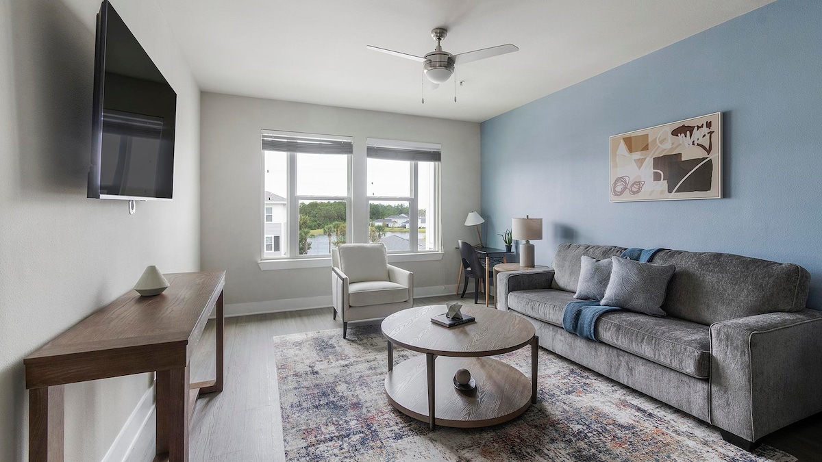 Masiyahan sa kaginhawaan ng maluwang at marangyang apartment na idinisenyo para lang sa iyo. Sa pamamagitan ng dalawang malalaking master suite, King bed, at pribadong banyo, magkakaroon ka ng lahat ng espasyo na kailangan mo para makapagpahinga at makapag - recharge. Puwede kang mag - lounge sa tabi ng pool na may estilo ng resort, manatiling aktibo sa state - of - the - art gym, o mag - explore ng mga kalapit na tindahan at kainan sa Town Center. 15 minuto lang ang layo mo mula sa beach at malapit ka sa Mayo Clinic. Sa madaling pag - access sa I -295, magugustuhan mo kung gaano kadali ang lahat sa paligid mo sa pangunahing lokasyon na ito