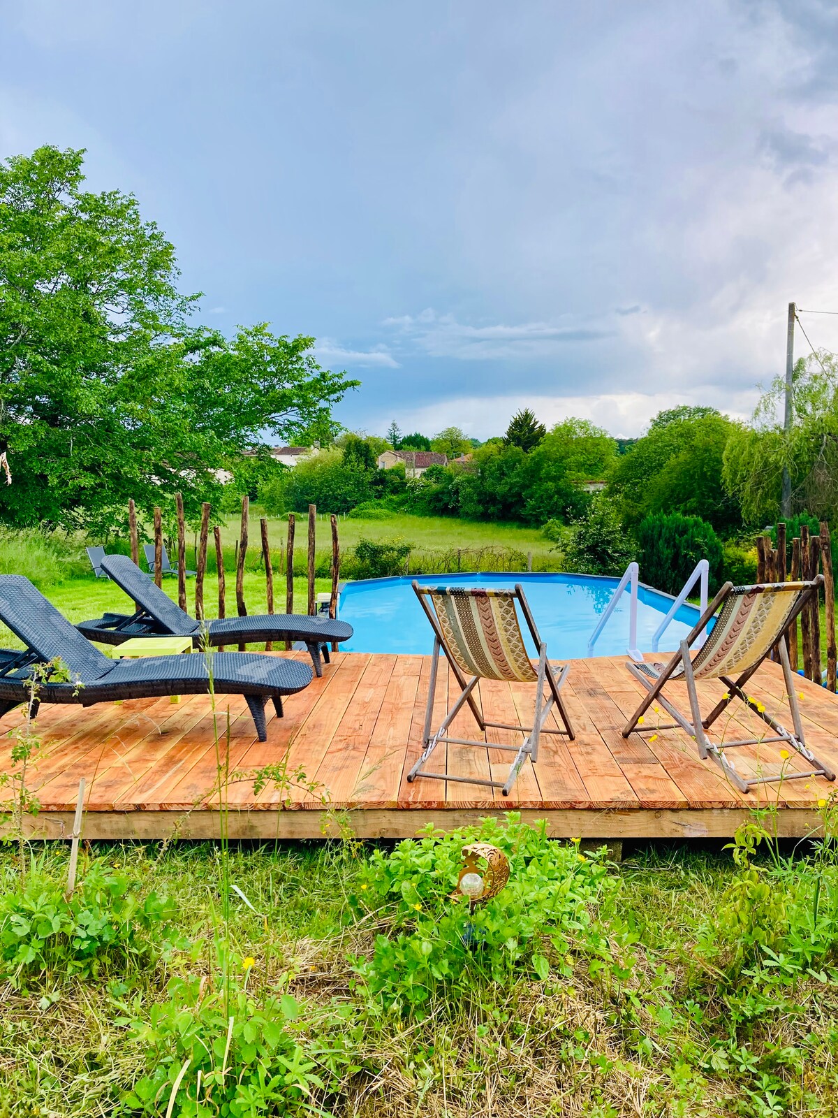 Matatagpuan sa burol, ang bahay na ito para sa 6 na tao ay nag - aalok ng mga kalmado, kalikasan at malalawak na tanawin. Pribadong heated swimming pool (Mayo - Setyembre) pribado, bakod na hardin, shaded terrace, outdoor lounge at BBQ. Sa loob: 2 silid - tulugan, sofa bed, bukas na kusina, kahoy na kalan at air conditioning. Isang mainit na cocoon para muling ma - charge ang iyong mga baterya para sa mga pamilya o grupo ng mga kaibigan, hanggang sa ritmo ng sikat ng araw at katahimikan. 200m access sa greenway. Access sa Angouleme TGV station 30 minuto ang layo.