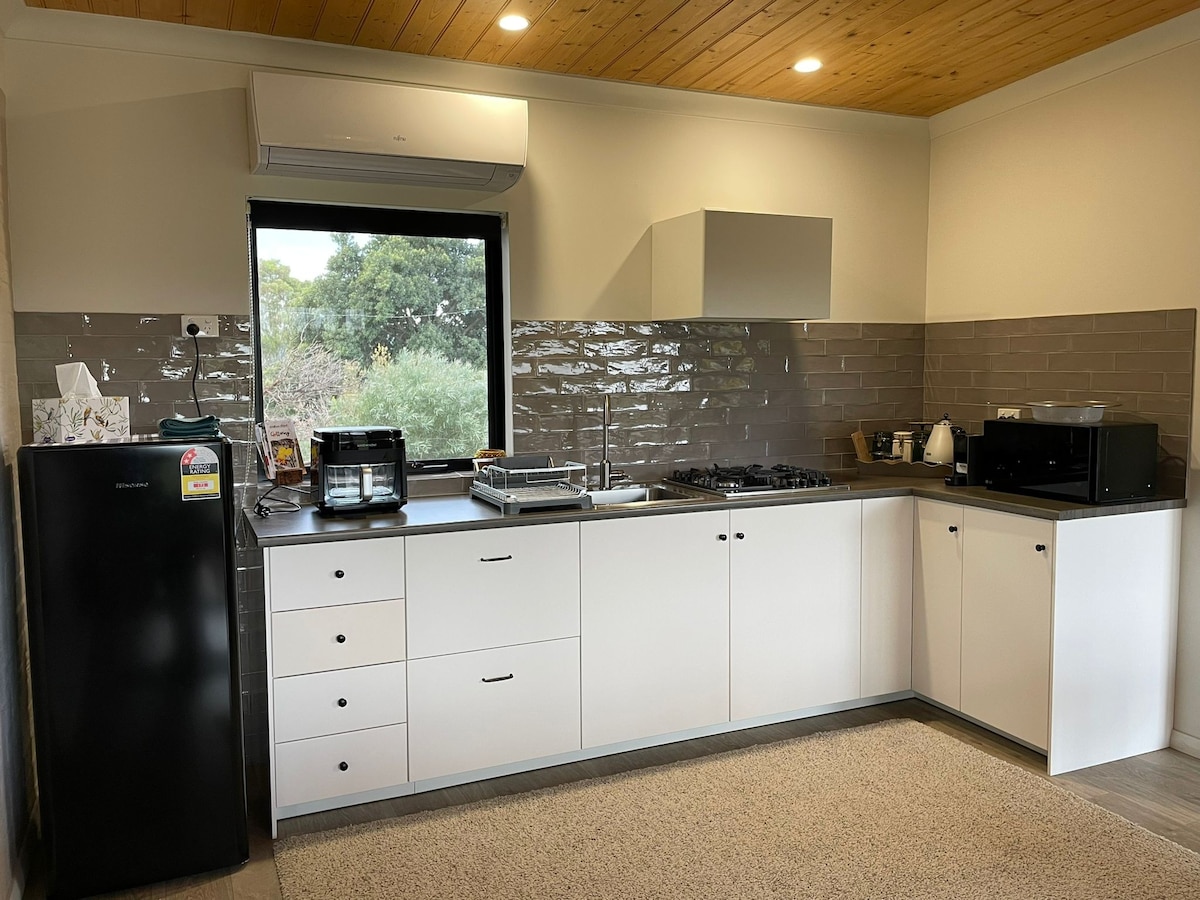 Mag‑relaks sa studio namin, isang tahimik na kanlungan sa gitna ng mga burol. Mapupuntahan ang lugar sa pamamagitan ng kalsadang gawa sa graba at mapapalibutan ka ng mga katutubong puno at hayop. Walang wifi dito kaya magkakaroon ka ng pagkakataong magdahan‑dahan, magpahinga, at muling makipag‑ugnayan sa kalikasan. 50 minuto ang layo ng retreat mula sa Perth Airport. Nakatira kami sa katabing bahay sa property, kaya malapit lang kami kung kailangan mo ng tulong, habang nananatiling pribado at self-contained ang iyong tuluyan. May 5G reception pa rin sa suite.
