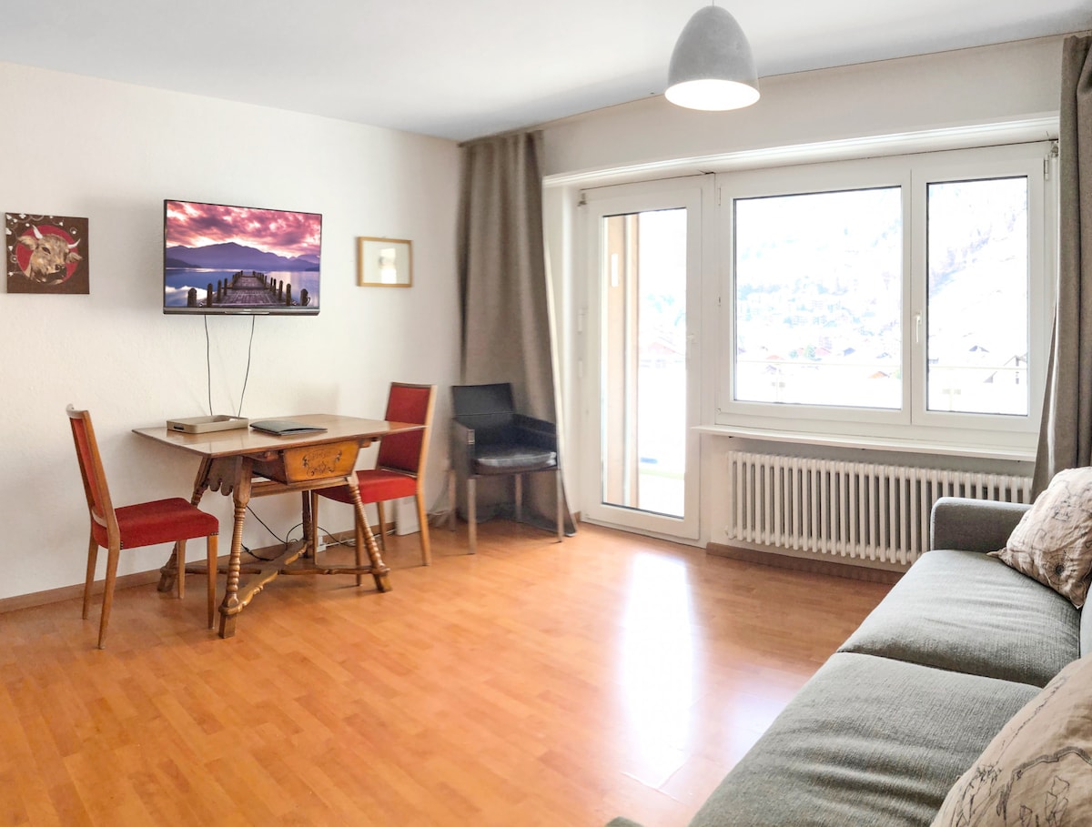 May gitnang kinalalagyan ang aming inayos na studio, 5 -10 minutong lakad ang layo mula sa Zermatt train station. Palaging sulit ang pag - akyat sa hagdan papunta sa bahay (90 hakbang), dahil ang lugar ay nailalarawan sa pamamagitan ng maraming ningning at mala - goss na tanawin ng nayon. Bilang karagdagan sa isang kusinang kumpleto sa kagamitan, ang apartment ay nilagyan ng bathtub, isang maginhawang sitting area at isang 1.80m bed. Available ang TV na may Apple TV box at libreng Wi - Fi pati na rin ang lockable ski room.