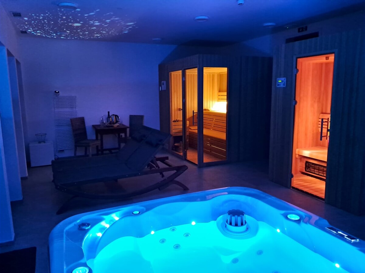 Dito nag - aalok ang kalikasan ng kahanga - hangang kagandahan, at inihayag ang kamangha - manghang tanawin sa hilaga ng Croatia. Kabilang sa magagandang berdeng bundok sa hilaga ng Croatia, ang oras ay may iba 't ibang ritmo, nagdudulot ng pagiging magiliw at katahimikan, nagbibigay ng kapana - panabik na kasiyahan at katuparan. Sa tanawin ng magandang tanawin ng Zagorje, puwede kang mag - enjoy sa kalikasan, mag - hike, maglakad, maglaro ng tennis, mag - enjoy sa aming lutong - bahay na alak o magrelaks lang sa aming bahay na may sauna, jacuzzi, fireplace na nagsusunog ng kahoy at iba pang amenidad na iniaalok namin.