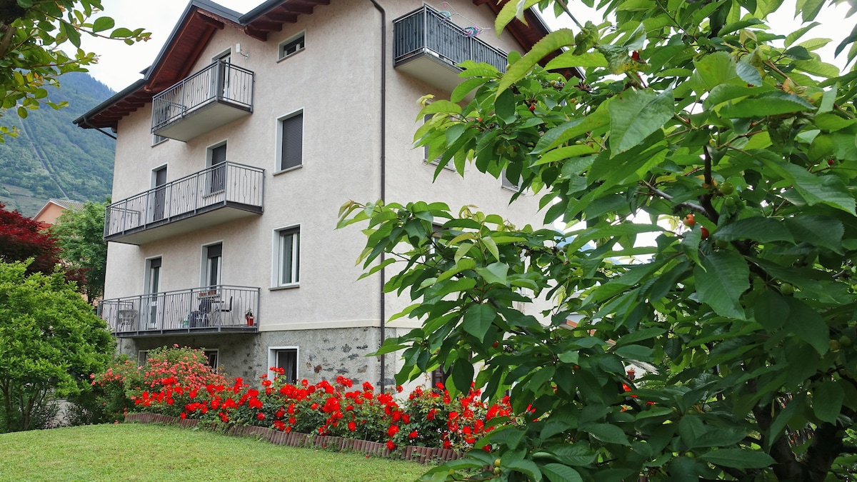 Appartamento su casa singola al pian terreno con cucina-soggiorno, 2 camere, bagno e posto auto privato. Zona strategica: -5 minuti dal centro città di Sondrio -150 m dalla fermata dell'autobus -15 minuti dal sentiero Valtellina -un'ora da Bormio -1/2 dalla Valmalenco 1/2 da Aprica -1 ora e mezza circa da LIVIGNO e poco più da SAINT MORITZ -40 minuti circa dal PONTE NEL CIELO (Tartano) -camminata lungo i terrazzamenti -possibilita di avere due mountainbike