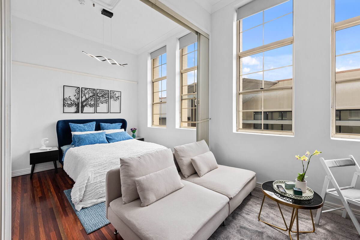 Yakapin ang katahimikan sa bagong pinalamutian at perpektong kinalalagyan na apartment na ito. Ang 3.6m mataas na kisame ay nagbibigay ng maraming natural na liwanag at maluwang na espasyo upang masiyahan. Naglalakbay ka man para sa negosyo o paglilibang, ito ay isa sa mga pinaka - hinahangad na lokasyon sa lungsod, sa loob ng maigsing distansya sa Riverwalk, Central Station, at lahat ng uri ng mga restawran, bar, at pamilihan.