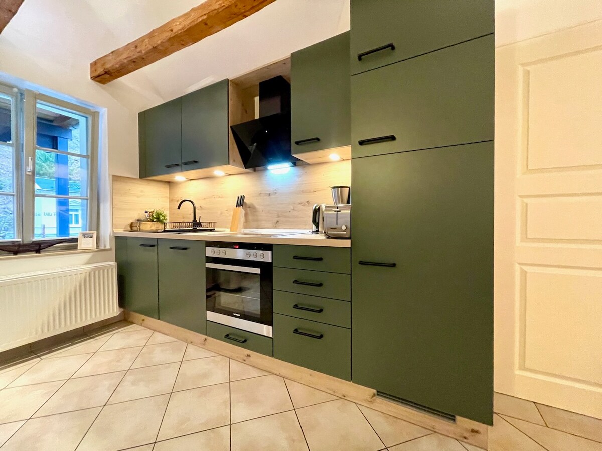 Ang apartment LOFT 2d ay tahimik na matatagpuan sa isang likod - bahay at kayang tumanggap ng dalawang tao. Sa dalawang palapag at maluwang na roof terrace na may mga muwebles sa lounge, puwede kang magrelaks nang mag - isa o bilang mag - asawa. Kung gusto mong magrelaks, nag - aalok ang apartment ng lahat ng kailangan mo para sa nakakarelaks na pamamalagi. Sa tag - araw, nag - aalok ang roof terrace ng sun bathing. Sa taglamig, ang mga marka ng apartment ay may malalawak na fireplace.