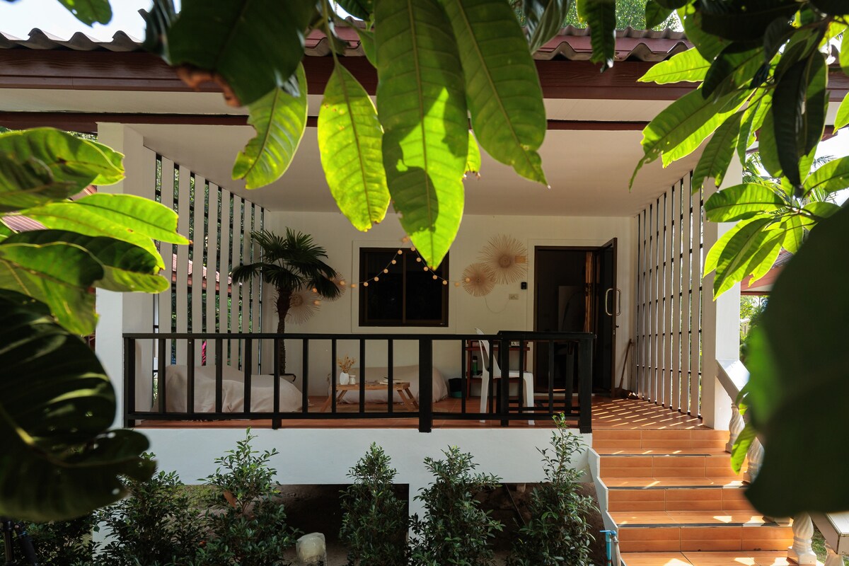 Ang bungalow ay matatagpuan sa pinakamagaganda at tahimik na bahagi ng isla, ang Haad Salad, ang buong bungalow ay protektado mula sa mga maliliit na lamok, may mga lambat sa bawat bintana, ang bahay ay may napakagandang espiritu at maririnig mo ang mga ibon habang tinatangkilik mo ang iyong oras sa balkonahe. Matatagpuan ito sa paligid ng kamangha - manghang kalikasan, maraming puno ng niyog, puno ng saging at mga kamangha - manghang bulaklak, ang 3min na lakad nito papunta sa Haad Salad beach.