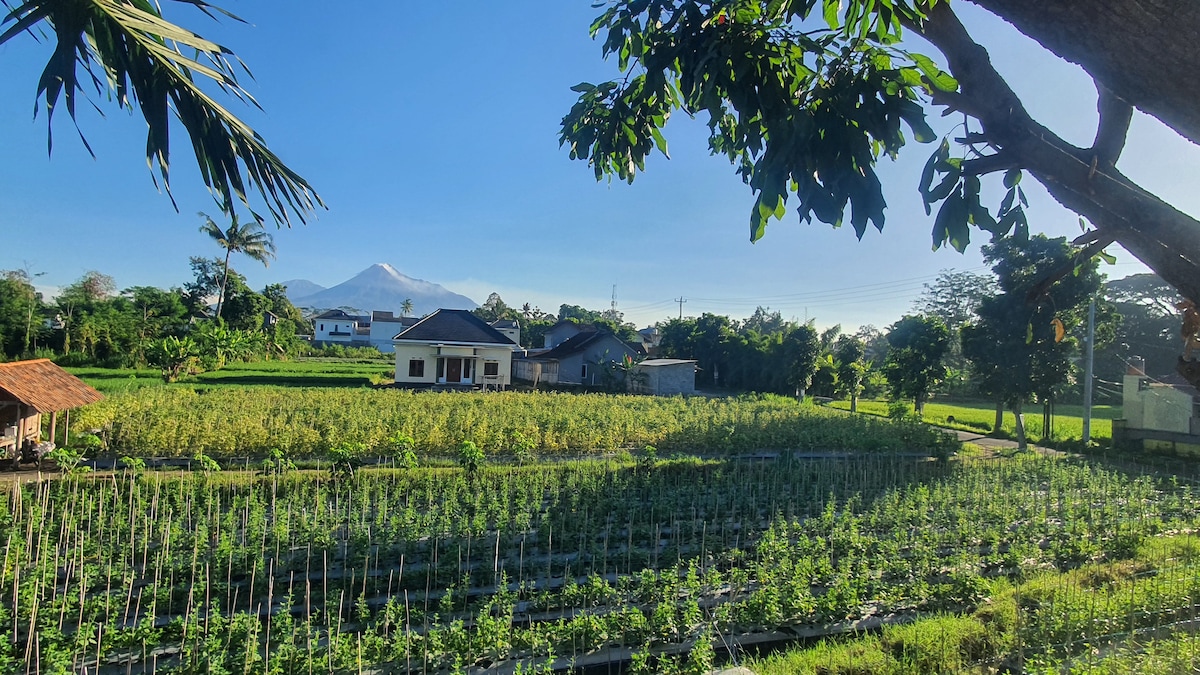 Matatagpuan sa gitna ng mga luntiang palayok at paanan ng Bundok Merapi ang komportableng kahoy na cottage na ito kung saan puwedeng makaranas ng totoong pamumuhay sa nayon. Gisingin ang sarili sa sariwang hangin ng bundok, banayad na tunog ng umaagos na tubig, at mga nakamamanghang tanawin ng Merapi mula mismo sa bahay. May dalawang kuwarto at isang shared na banyo ang cottage. Sa likod ng bahay, may bakuran na damuhan at maliit na fish pond na perpekto para magrelaks, mag‑tsaa sa umaga, o magpahinga.
