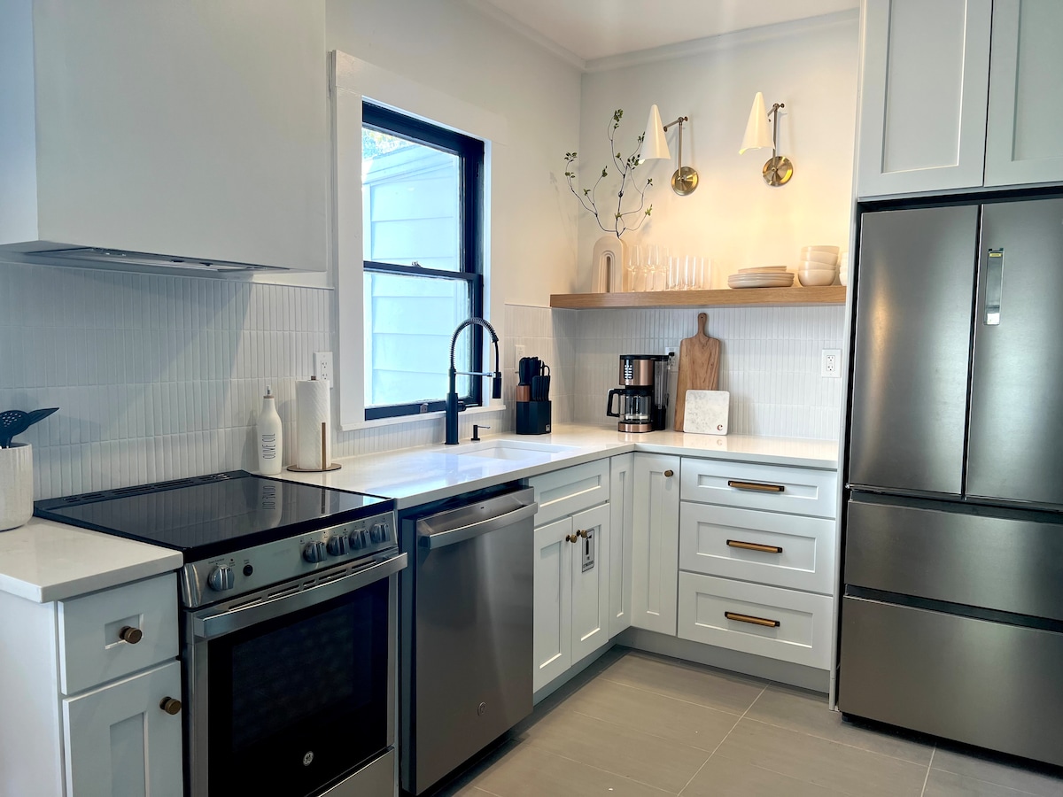 Pinagsasama-sama ng nakakamanghang naayos na cottage ang mga modernong amenidad at vintage charm... * 2 master suite na may queen bed * Tahimik na distansya sa paglalakad sa kapitbahayan para tuklasin ang Pinakamatandang Lungsod ng Bansa * Mga clawfoot tub sa loob at labas (kasama ang mga shower, siyempre!) * Malaking screen-in porch na may nakasabit na daybed * Off - street na aspalto na paradahan * Ganap na bakod na bakuran, Weber grill, gas fire pit * Mabilis na Wi‑Fi at Smart TV * 2 bloke papunta sa Fish Camp, Ice Plant, LaNuvelle, trolley stop * 10 minutong lakad papunta sa downtown
