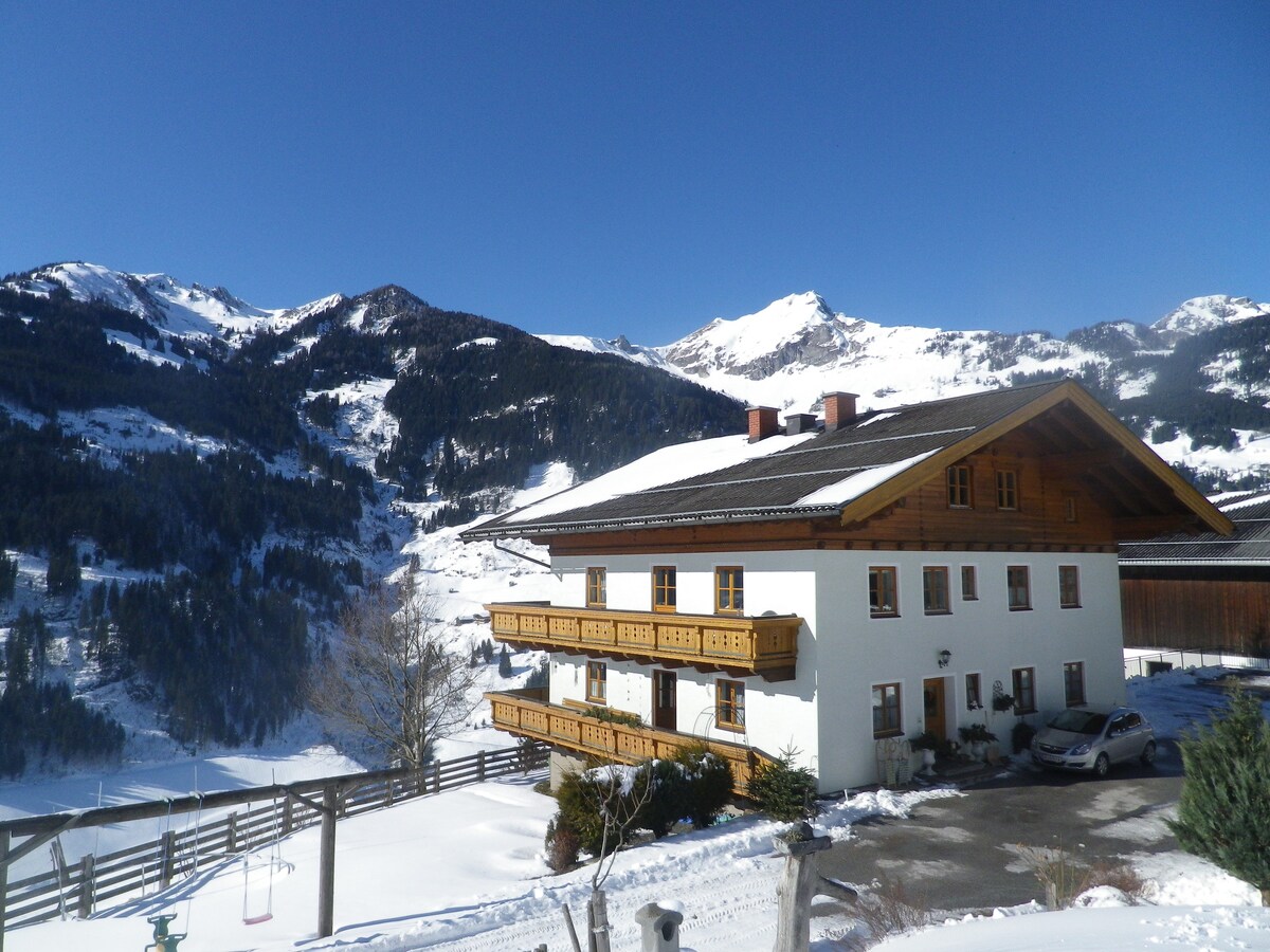 Matatagpuan ang aming tuluyan sa maaraw na lugar. Pag - ikot sa magandang Großarl. Dahil may 2 km na kalsada sa bundok papunta sa property, inirerekomenda ang mga kadena ng niyebe sa taglamig. Ang apartment ay may 150 metro kuwadrado, 4 na silid - tulugan, 4 na banyo pati na rin ang malaking silid - tulugan sa kusina. Mayroon itong 25 lfm balkonahe na may magandang tanawin ng mga nakapaligid na bundok. Ito ay isang mahusay na base para sa maraming pagha - hike sa mga nakapaligid na alpine pastulan.