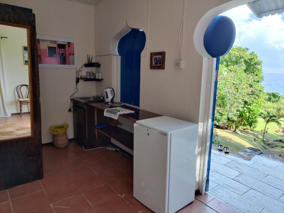 Maghanap ng relaxation sa nakahiwalay na hiwalay na cottage na ito kung saan matatanaw ang Caribbean Sea sa gitna ng mga tropikal na halaman. Sa maikling paglalakad, makakahanap ka ng dalawang maliliit na beach na masisiyahan. Matatagpuan kami sa lugar ng Strawberry Fiedls, isang nakahiga na nayon na may mga mangingisda, magsasaka, at craft. I - explore ang lugar sa pamamagitan ng pagha - hike sa mga waterfalls ng Kwamen o paglalakad papunta sa ilang lokal na tindahan, bar, o cook shop. Available ang mga Airport Pickup at Daytour ng bihasang lokal na driver.