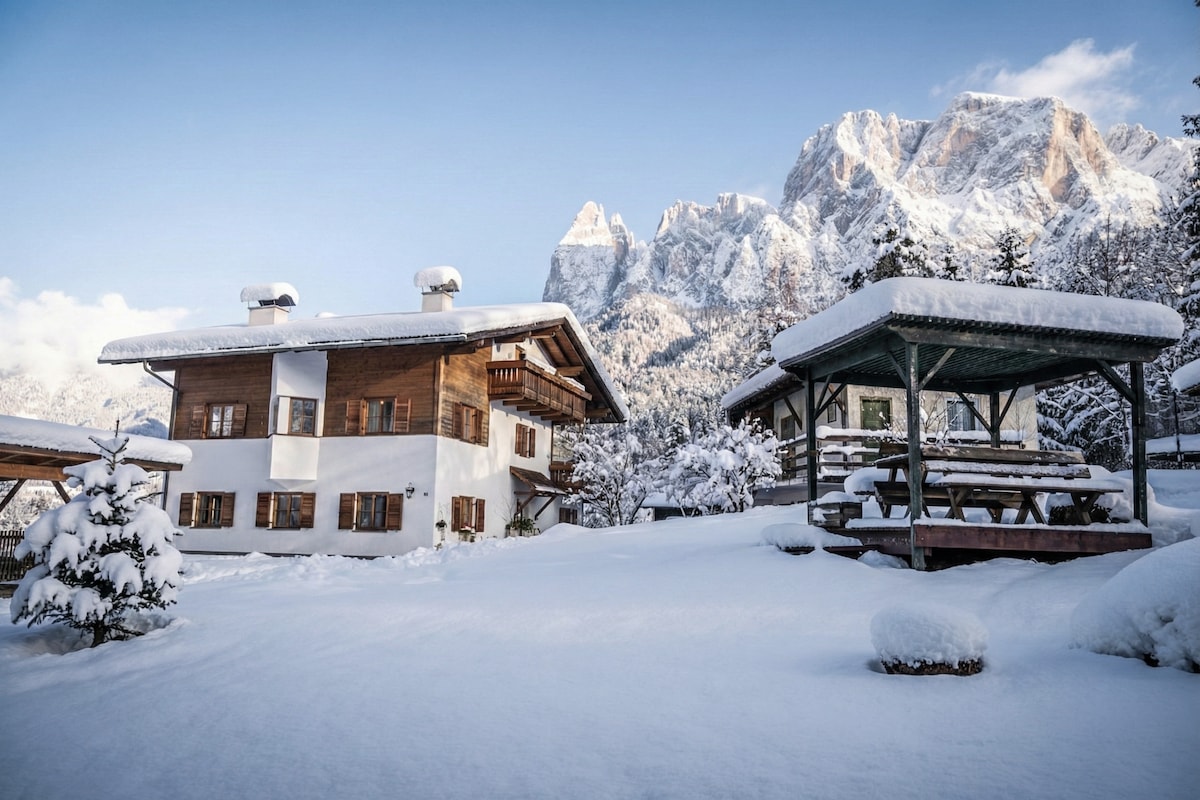 Ang maibiging inayos na apartment ni Florentine (80 sqm) na may 3 silid - tulugan (2 double bed, 1 bunk bed) 1 banyo, sala, kusina sa itaas ng Seis. Masiyahan sa magandang tanawin ng Santner, Schlern at nayon ng Seis am Schlern! Sa maluwag na terrace, puwede kang magbabad sa araw, kumain at magrelaks at tapusin ang araw. Ang apartment ay matatagpuan sa gilid ng kagubatan at ang perpektong panimulang punto para sa mga pagha - hike. Sa loob ng ilang minutong lakad, makakarating ka sa hintuan ng bus papunta sa Seiser Alm Bahn.
