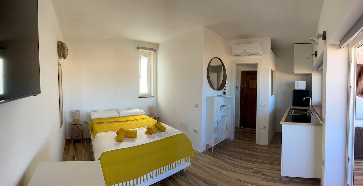 Ang "Gold View" ay isang magandang bagong naayos na apartment, na matatagpuan sa ika -2 palapag ng isang tahimik na eksklusibong tirahan na may tanawin ng maliit na daungan at kapuluan ng Maddalena. Nagtatampok ito ng libreng Wi - Fi at air conditioning system. Kasama sa tuluyan ang mga tuwalya, kobre - kama, at lutuan. Perpekto ito para sa 2 tao na gustong magrelaks at mag - enjoy sa dagat. Limang minutong lakad lang ang layo nito mula sa dagat at sa sentro ng Palau. Available ang mga bar, restawran, supermarket at tindahan sa loob ng maigsing distansya.