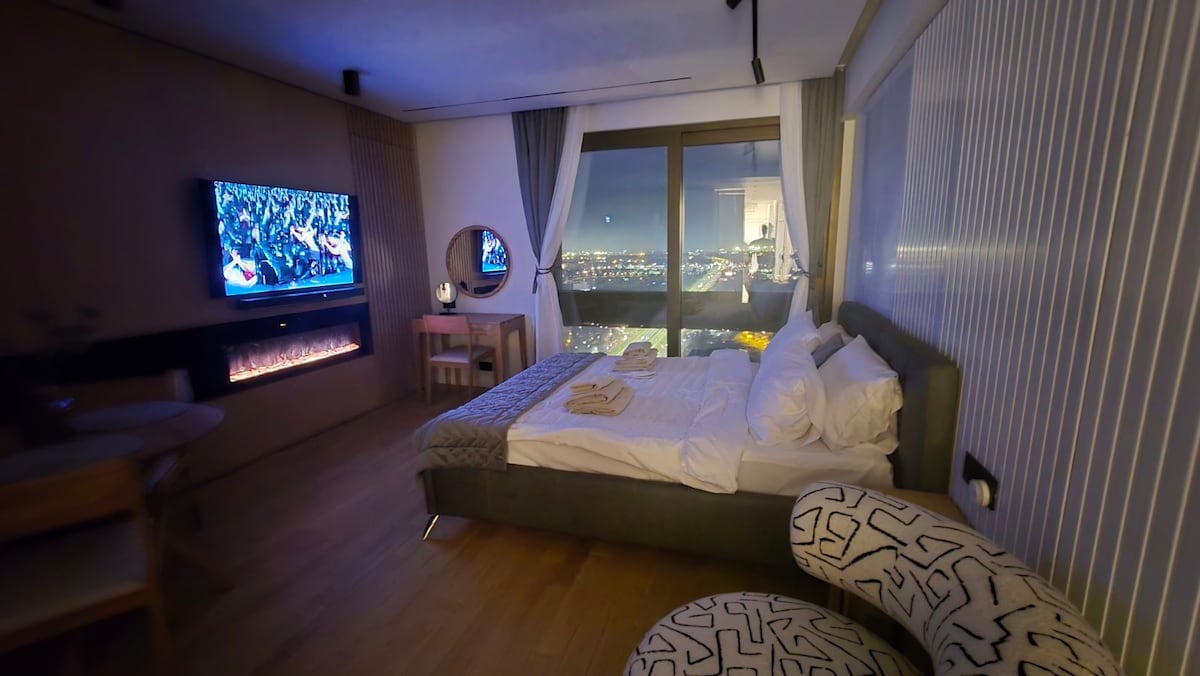 Matatagpuan sa pinakamataas na mataas na pagtaas sa Belgrade, Genex tower, na itinayo sa brutalistang estilo. Ang apartment na 70 metro kuwadrado na ito, sa tuktok, ika -30 palapag, ang pinakamataas na tirahan sa Belgrade, ay nag - aalok sa iyo ng pinakamahusay at natatanging tanawin na kumalat mula sa Kalemegdan at lumang bayan sa lahat ng makabuluhang landmark ng lungsod. Ganap na na - renovate at pinalamutian sa isang modernong, wenge minimalist na paraan na nag - aalok din ito ng HDTV at WI - FI. Mainam ang aming tuluyan para sa mga mag - asawa, mag - asawa na may mga anak, solo adventurer, at business traveler.
