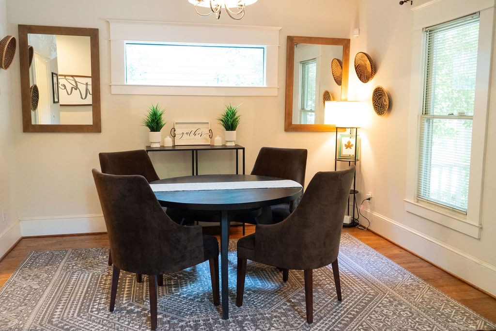 This beautiful duplex, a 1930's southern home in the Edgewood neighborhood of Atlanta, has a huge front porch to "sit a spell" with a cold glass of lemonade. You have sole access to everything in this lovely unit as well as front and back outdoor spaces. Parking is off-street at the back of the house. Pets are welcome- just tell us they're coming! Check-in is easy and this unit is personally managed by owner, Mary Beth, who is nearby to make sure your stay is absolutely perfect.