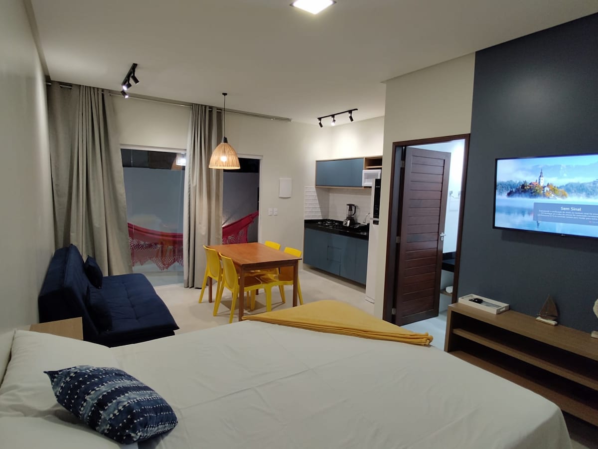 Kumusta, ang chalet na matatagpuan sa Maragogi Alagoas, sa peroba beach, isa sa mga pinaka - kamangha - manghang beach sa Maragogi. Chalet na may silid - tulugan, na may double bed at sofa bed sa silid - tulugan, en - suite/social bathroom, na isinama sa kusina na may mga sala, TV, refrigerator, ihawan, lutuan at mga pangunahing kagamitan sa kusina. Chalet na halos malapit sa dagat at malapit sa mga bar, restawran at ilang beach na maaari mong makilala sa loob ng ilang minuto, ikasisiya mong tanggapin ka sa Brazilian Caribbean na ito. MAYROON DING transfer, mga SPEEDBOAT RIDE