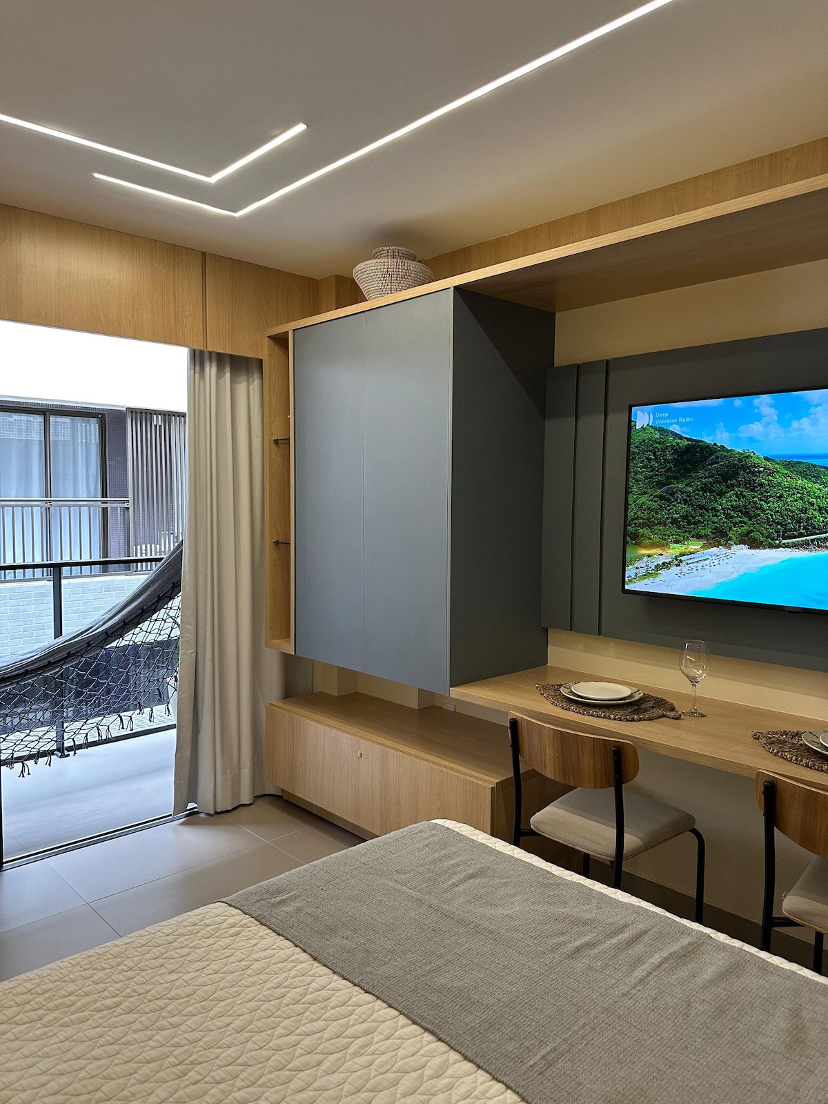 Libreng Wi - Fi at umiikot na paradahan SmartTV LED 40" Pagkain at Inumin: American cuisine na may minibar cooktop, microwave, coffeemaker at saunduicheira Split na may air conditioning Banyo: ensuite na banyo na may shower, mga tuwalya. Comfort: kontrol sa klima, sobrang komportableng Queen bed. Hindi kami nag - aalok ng pang - araw - araw na serbisyo sa paglilinis. Matatagal na pamamalagi, maaaring mapagkasunduan ang serbisyo sa paglilinis bago mag - book. Hindi kasama ang almusal sa araw - araw na rate*