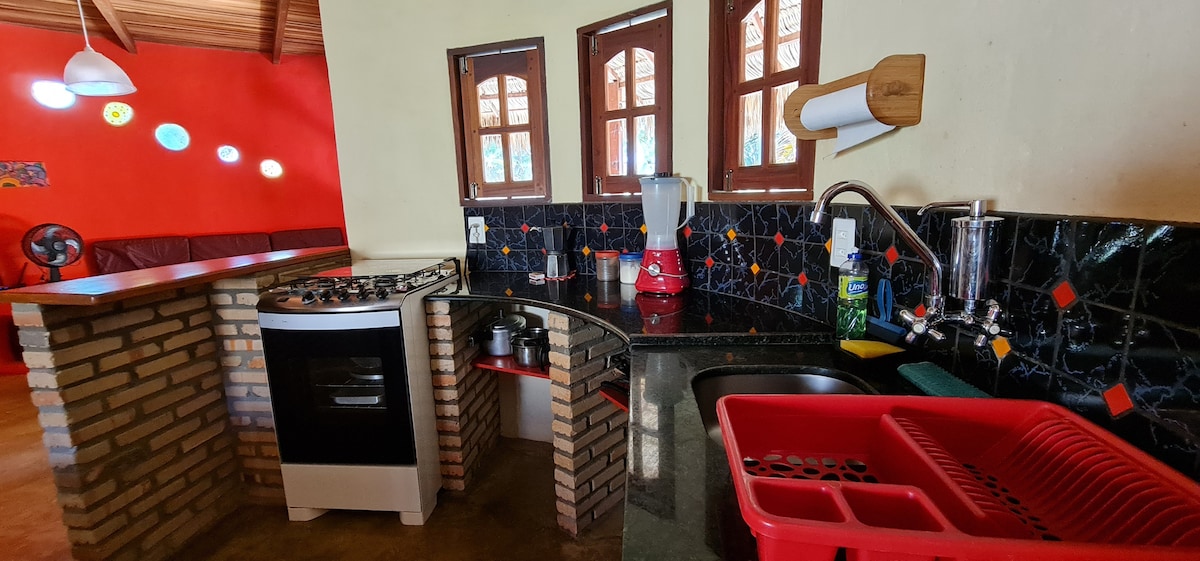 Komportableng Chalé na inayos sa Canoa Quebrada. Kumpletong kusina. Malaking silid - tulugan na may double bed at dalawang single bed, espasyo para sa duyan. Perpektong lokasyon para sa mga naghahanap ng katahimikan at pakikipag - ugnayan sa kalikasan, 200 metro lang ang layo mula sa magagandang Canoa dunes at 250 metro mula sa beach. Ilang metro mula sa mga pinaka - maimpluwensyang beach stall Tumatanggap ng hanggang 5 tao, 1 double bed at 2 single bed (sa kuwarto), isang solong sofa (sa sala). I - simulate ang mga pamamalaging 3 gabi o higit pa sa kalendaryo at tingnan ang mga diskuwento