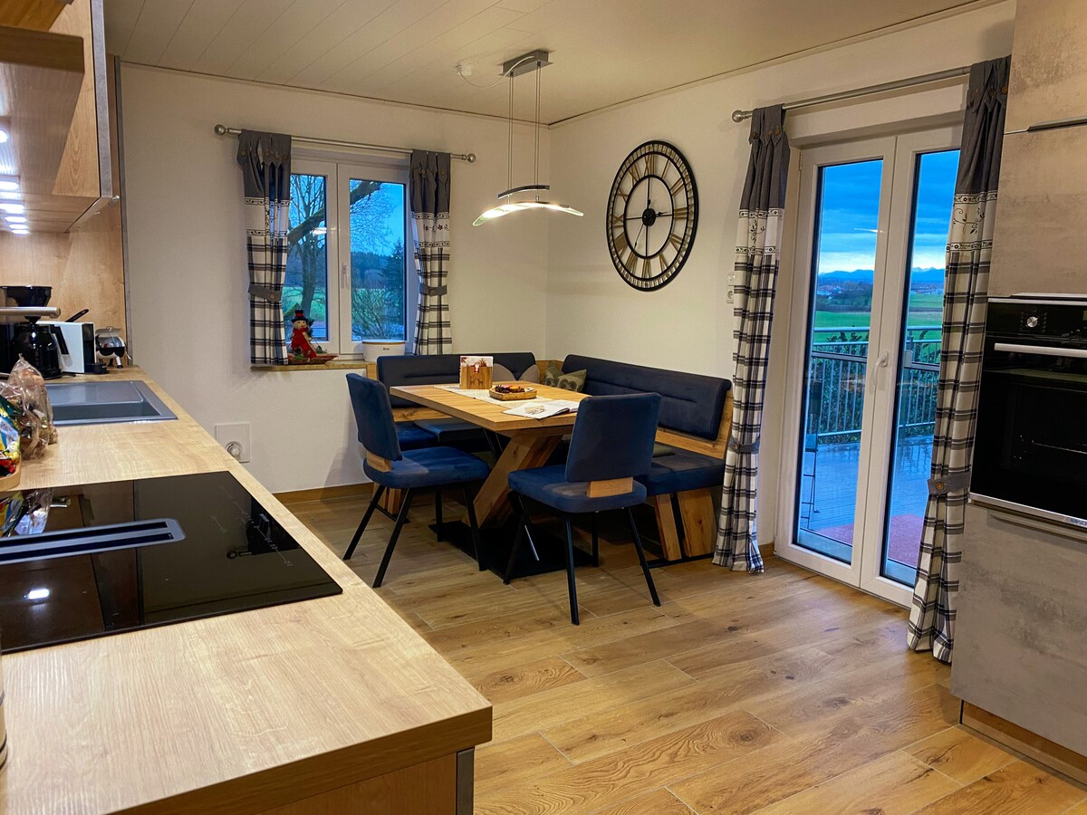 Maaraw na apartment sa isang tahimik na lokasyon, na may balkonahe at magagandang tanawin sa lahat ng panig. Matatagpuan ang apartment na "Weitblick" sa ika -2 palapag na may hiwalay na pasukan na mapupuntahan sa pamamagitan ng panlabas na hagdanan. Matatagpuan ang Oedenberg sa gitna ng magandang Inn - Hügelland kasama ang maraming cycling at hiking trail nito. Mga distansya: 10 Min Wasserburg am Inn 30 min. Rosenheim 35 min. Messe München 45 min. Munich Airport 40 min. Chiemsee - 60 min sa mga bundok 90 min Salzburg